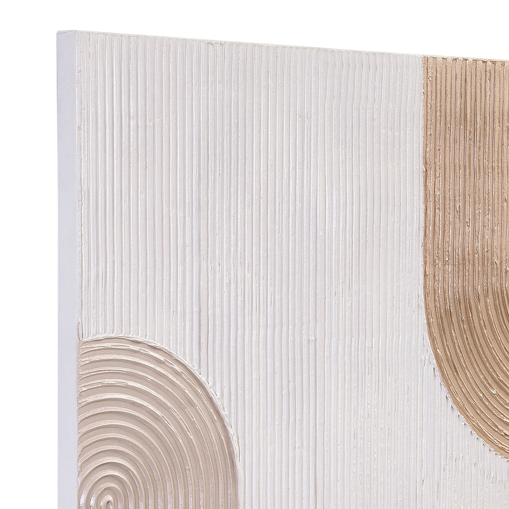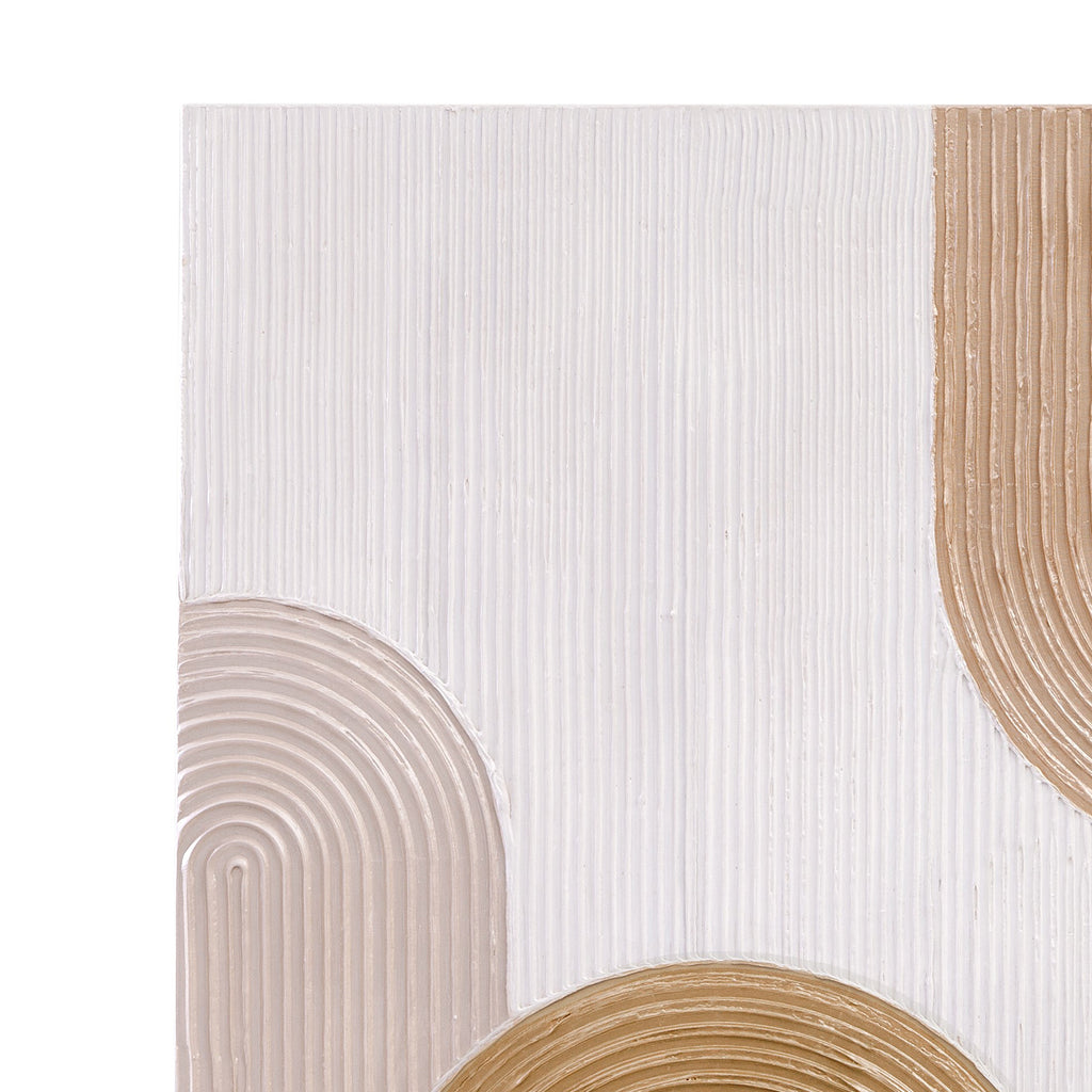 Iggy is an abstract hand painted canvas with a circular relief pattern.