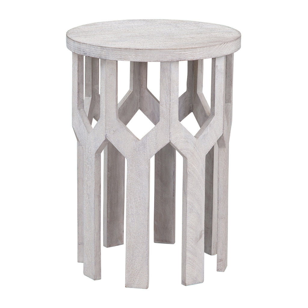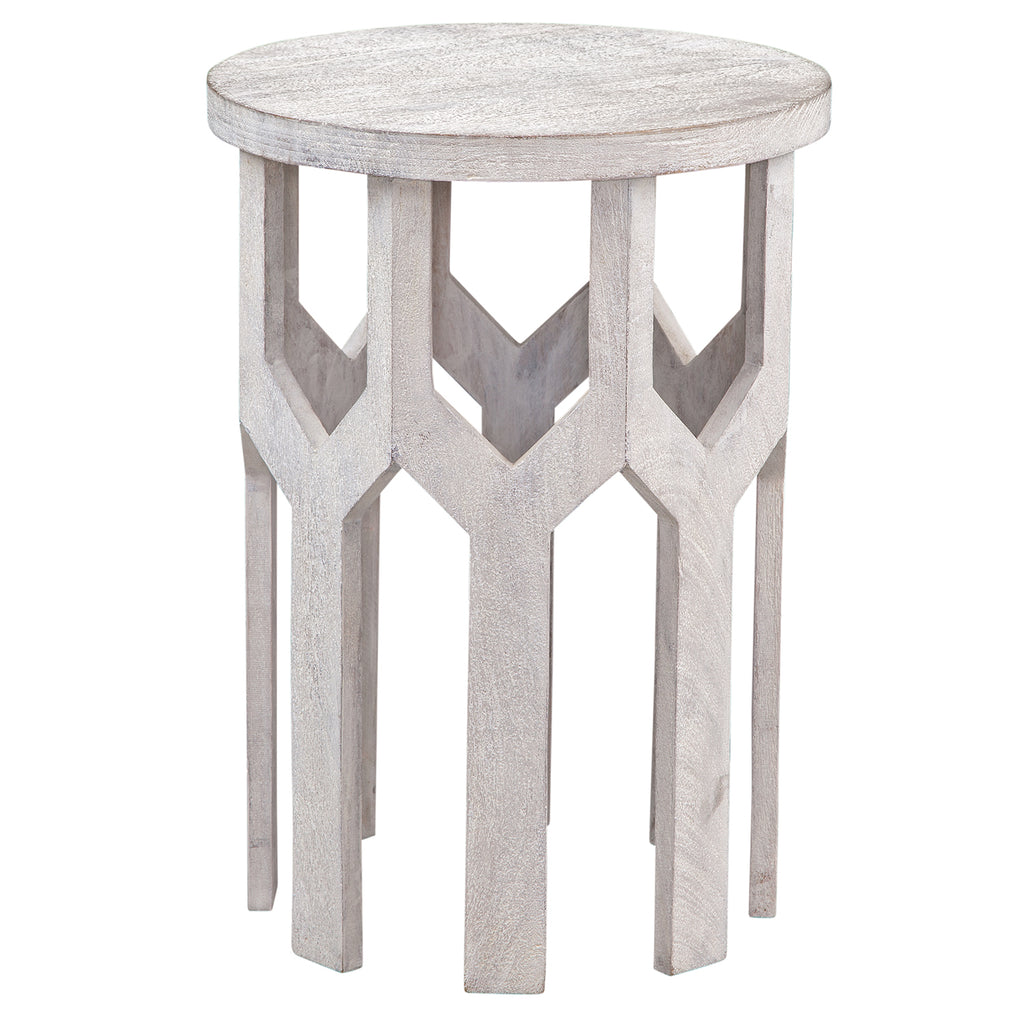 The Loyd White Accent Table seamlessly blends coastal farmhouse style with enduring elegance. Made from solid mango wood in a calming sandblasted white-wash finish, this table adds a touch of character to your space.