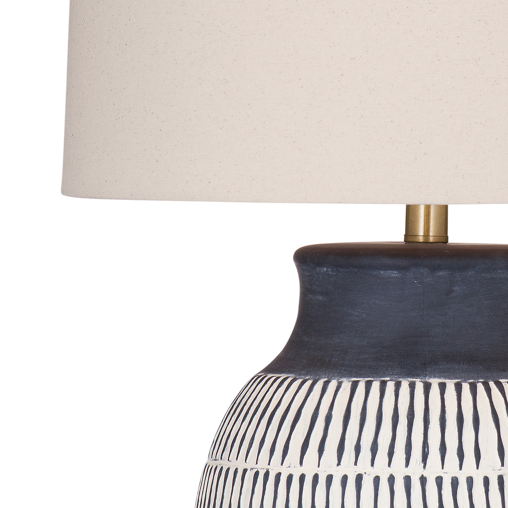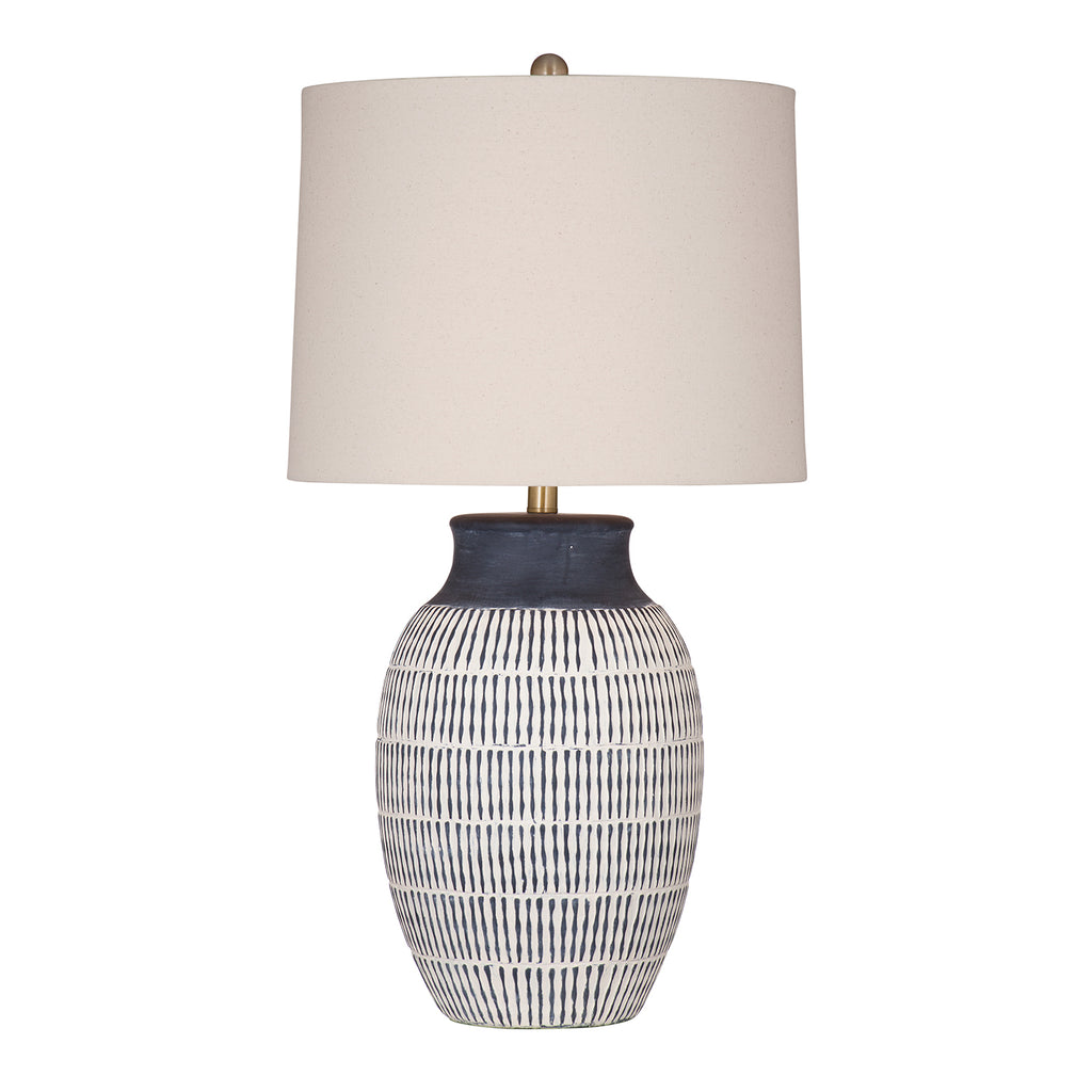 The Marrengo Table Lamp stands as a testament to exquisite craftsmanship, expertly fashioned from durable ceramic material, presenting a blend of both resilience and aesthetic allure. Finished in a captivating matte blue, the lamp exudes a sense of modern sophistication. Accompanied by a tapered shade in an elegant off-white hue, the Marrengo Table Lamp achieves a harmonious balance between contemporary design and timeless charm. The carefully selected materials and meticulous attention to detail make this lamp a distinguished addition to interior spaces, seamlessly merging enduring design with a touch of modern allure. The matte blue finish complements the ceramic body, casting a visual delight. With its thoughtful combination of materials and colors, the Marrengo Table Lamp not only enhances the aesthetic appeal of any room but also provides a soft and inviting illumination, making it a versatile and stylish addition to interior decor.