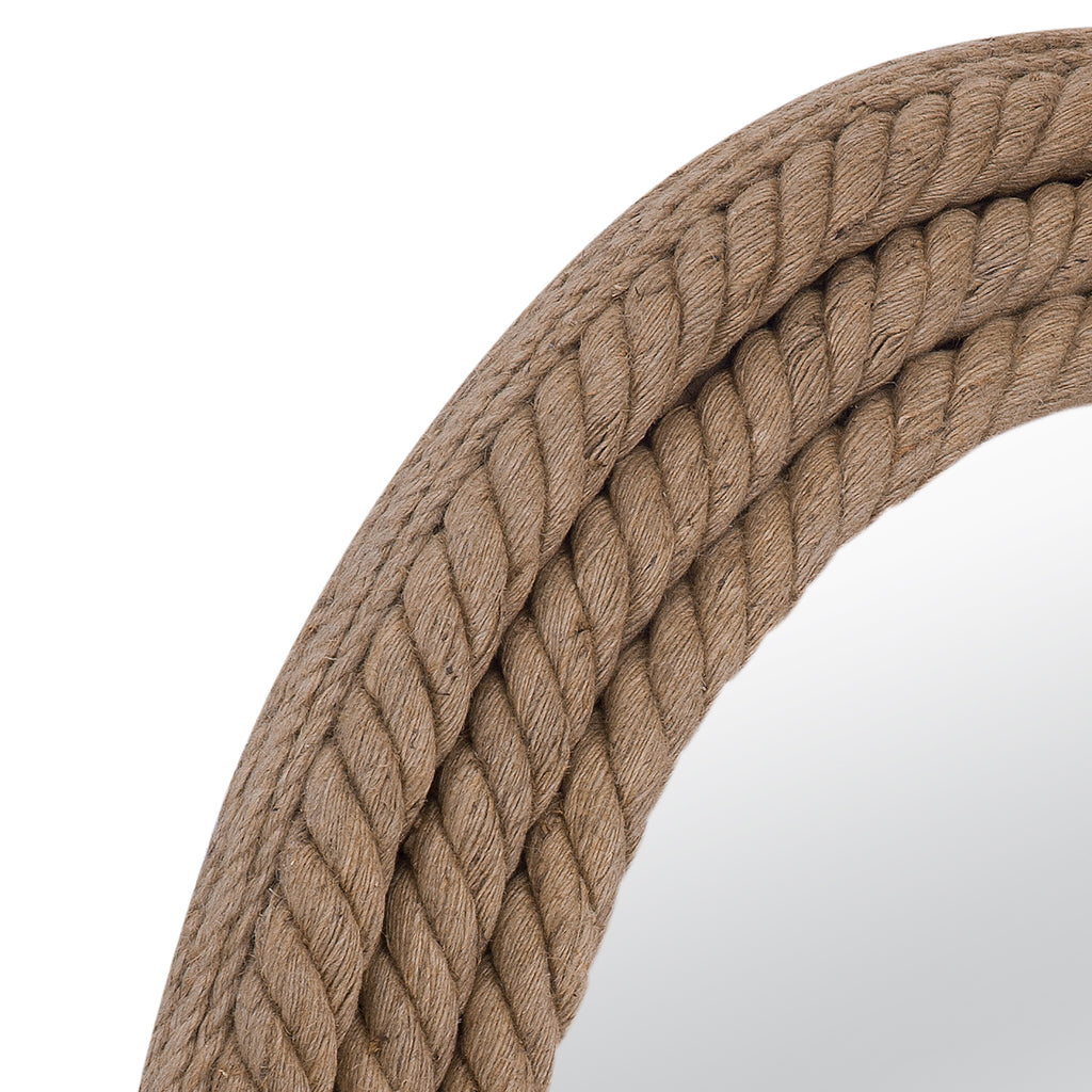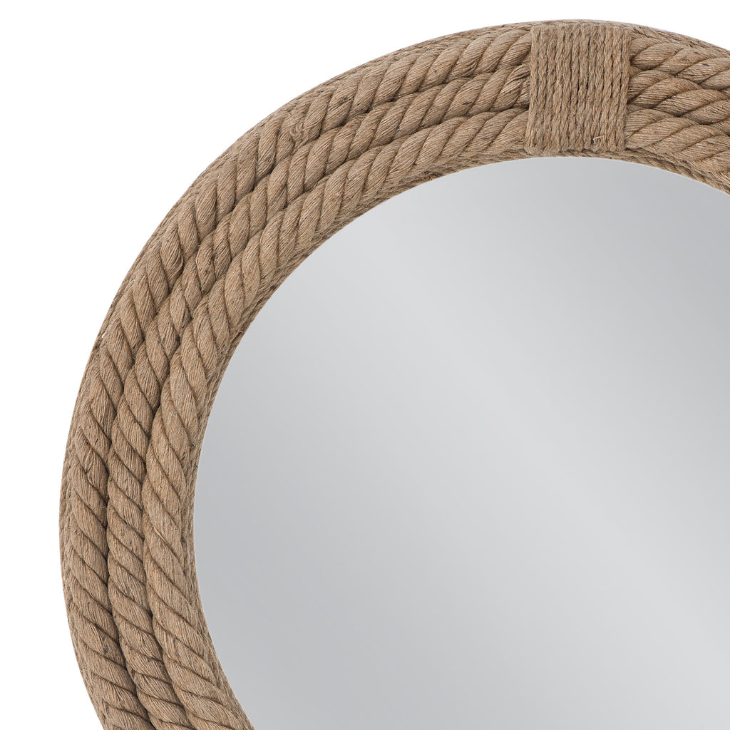 The Mayflower Wall Mirror features a coastal design with a round shape and a unique rope frame, adding a relaxed, nautical touch to any room. The natural texture of the rope complements the mirrors clean lines, creating a charming, beach-inspired aesthetic. Perfect for enhancing a variety of interior styles, this mirror brings both style and functionality to your home. The Mayflower Wall Mirror is a versatile piece that adds warmth and character to your space with its coastal flair.