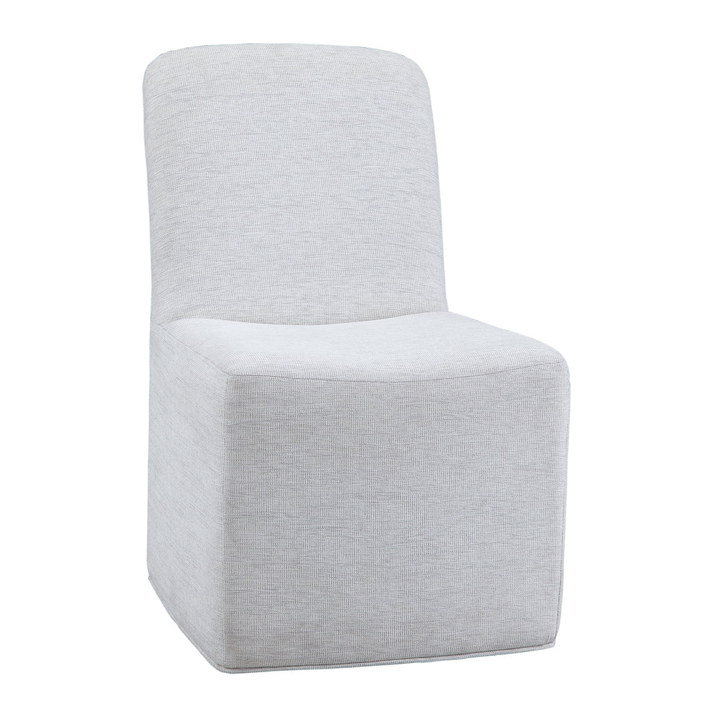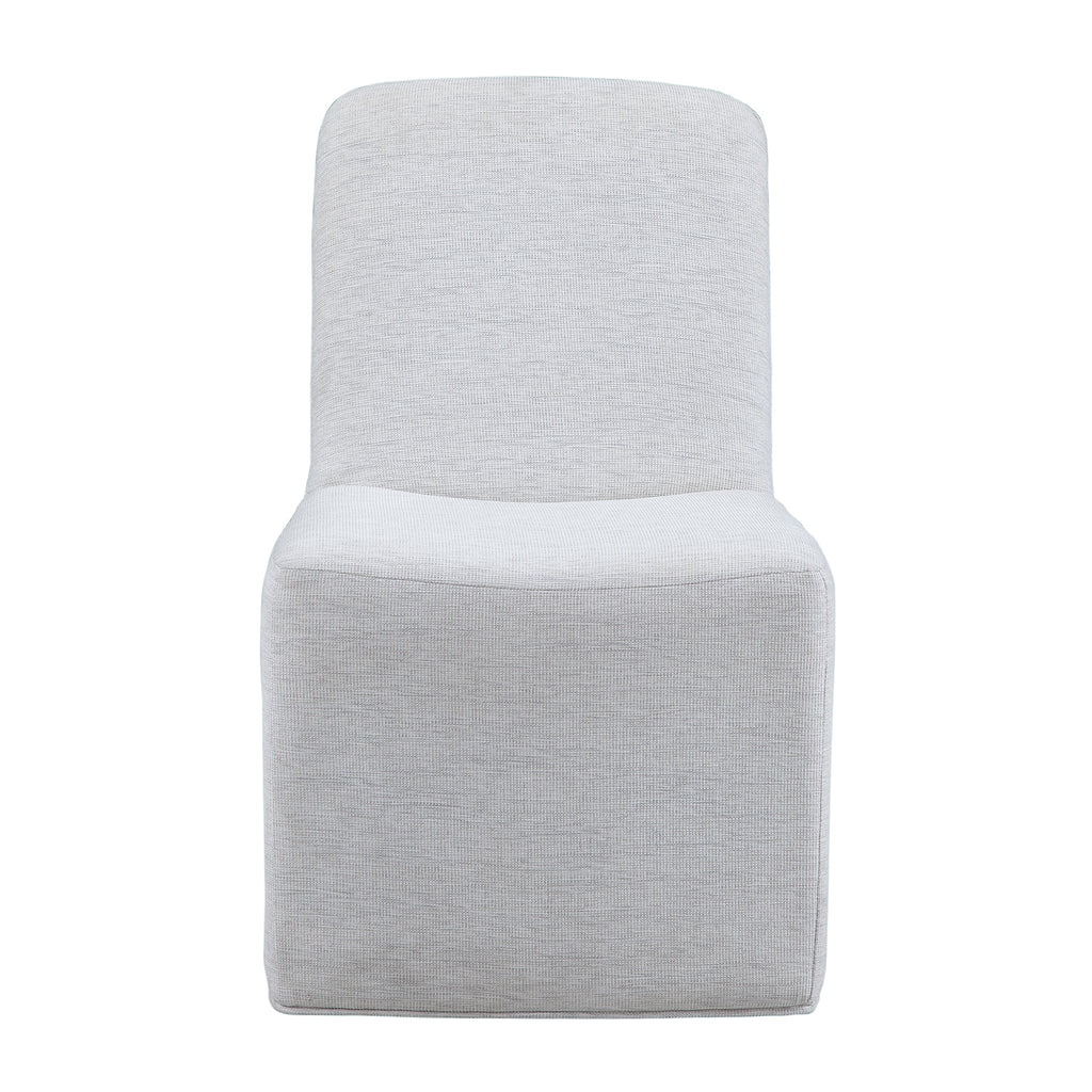 Introducing the Meyer Dining Chair, where modern-inspired design meets comfort in a linen-like fabric with an oyster hue. Crafted from 100% polyester for durability, this chair is a statement of thoughtful design and reliability. With four casters for easy mobility, Meyer effortlessly blends style with practicality, inviting you to create a warm and inviting dining space.