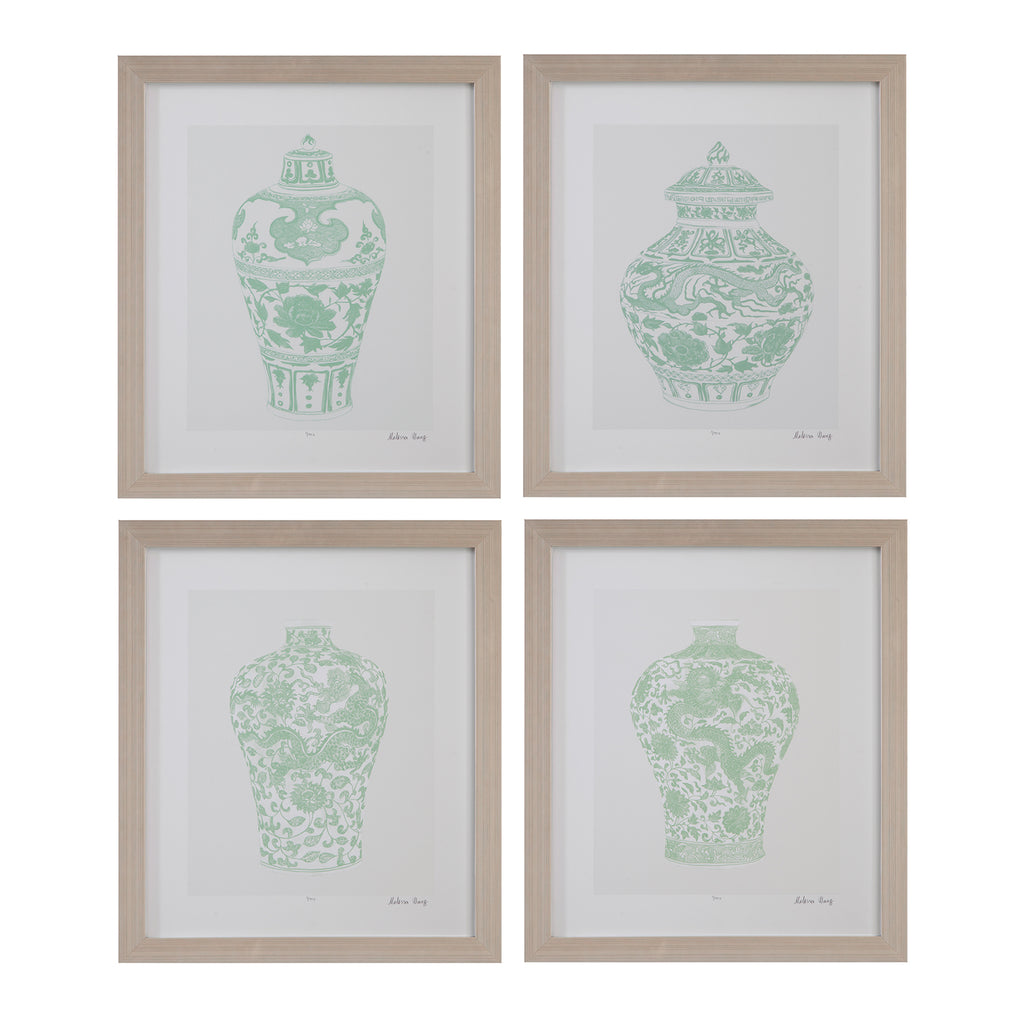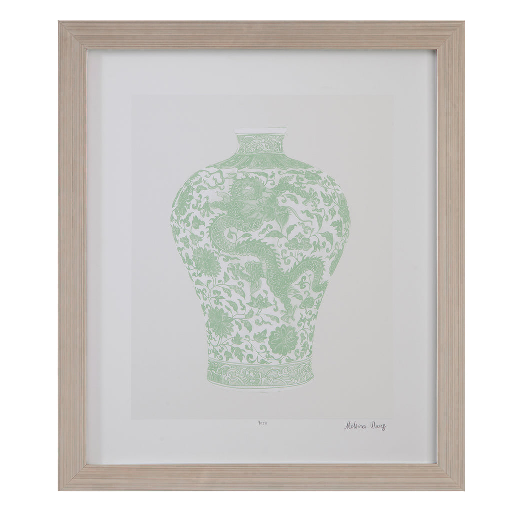 Mint Vases IV is a limited edition print, signed and numbered by the artist and printed on fine art cotton rag paper. The print is framed in a 1 inch silver tone frame.