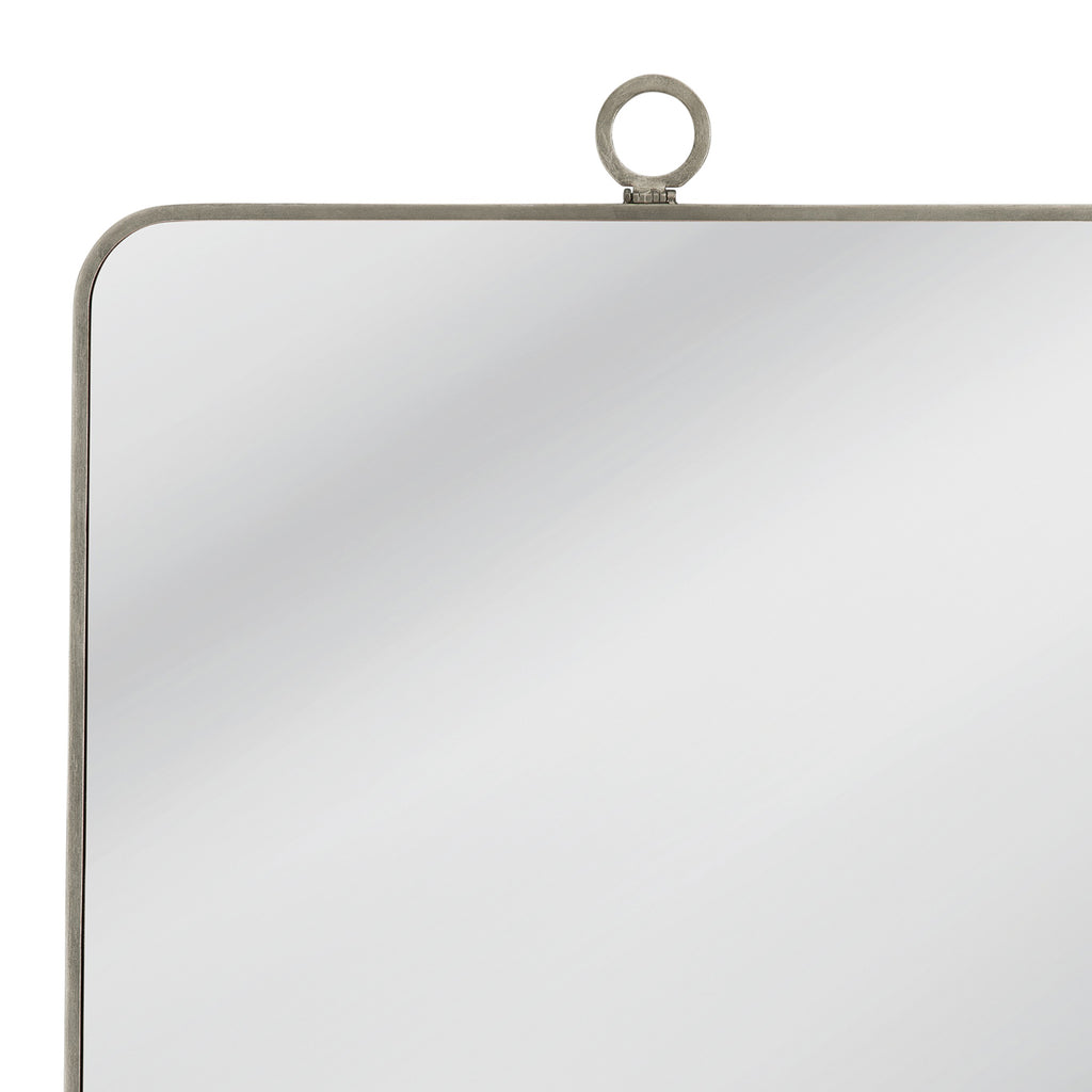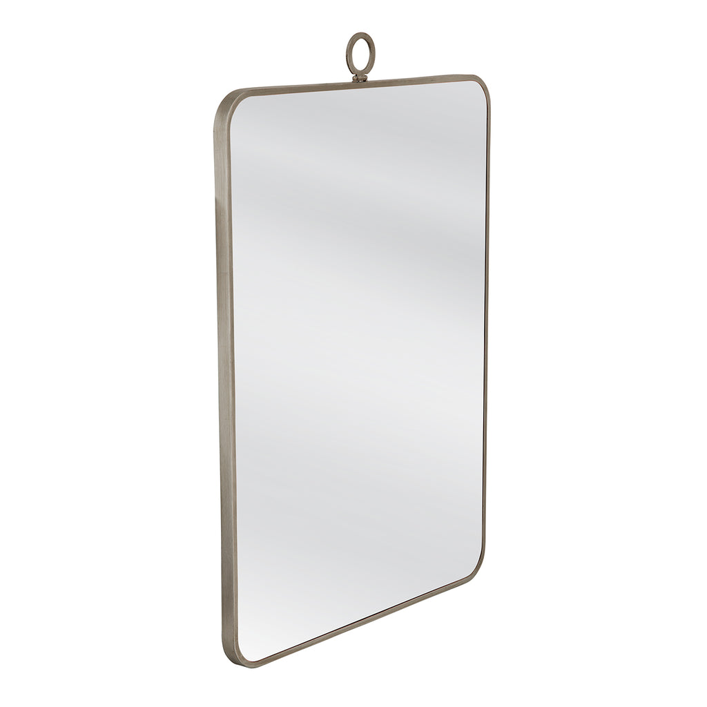 The Monte Wall Mirror features a sleek rectangular design complemented by rounded corners and a distinctive circular motif at the top center, all finished in an elegant silver leaf tone. This modern and contemporary piece adds sophistication to any space while offering a touch of timeless style. Crafted with quality materials, it brings both functionality and aesthetic appeal to your home decor, making it a versatile and stylish addition to any room.