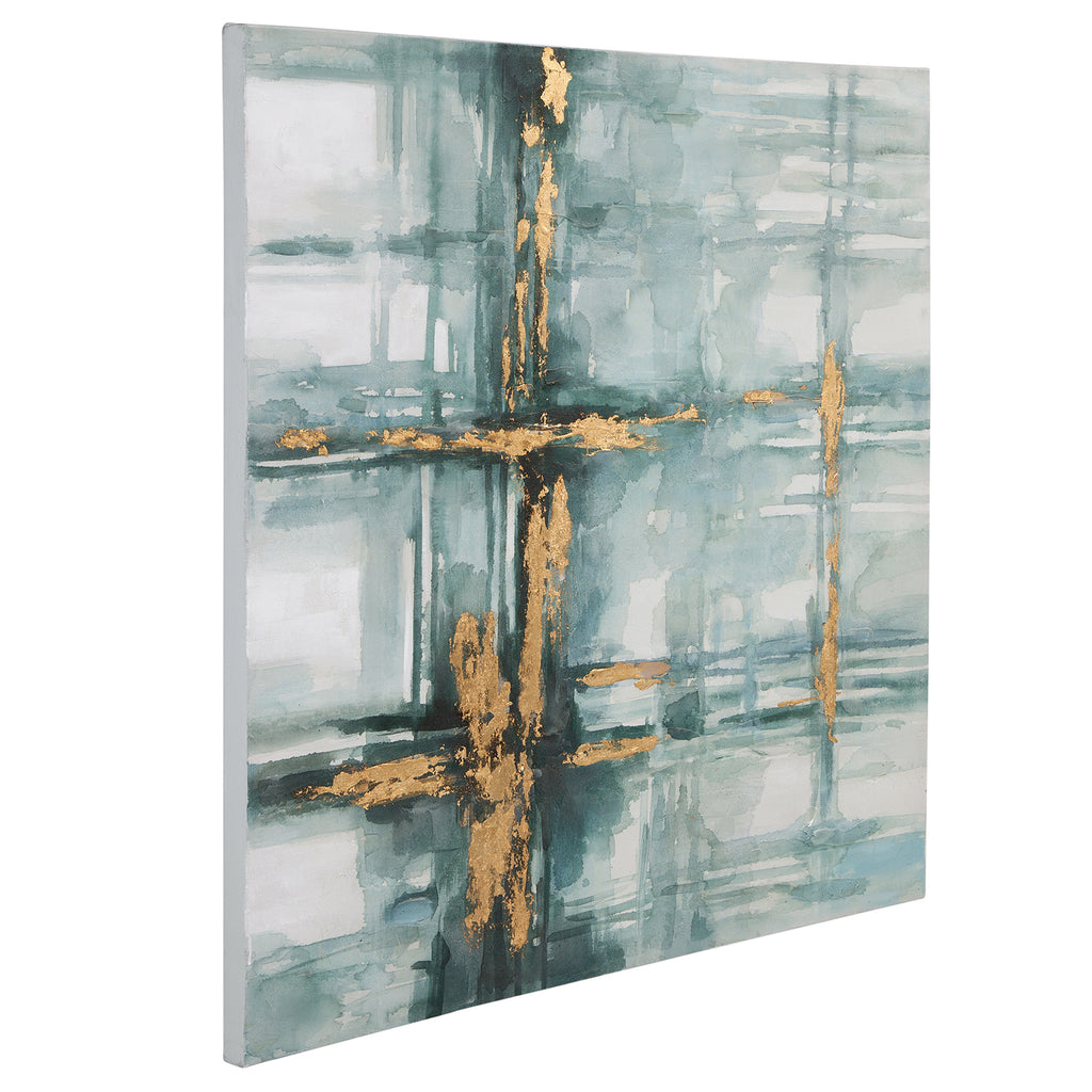Mulligan is an abstract gallery wrapped canvas that is hand crafted.