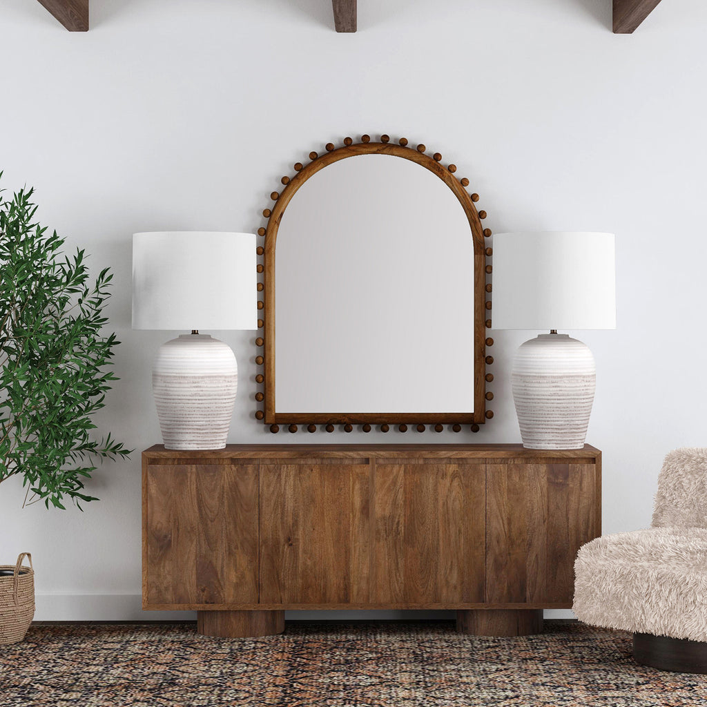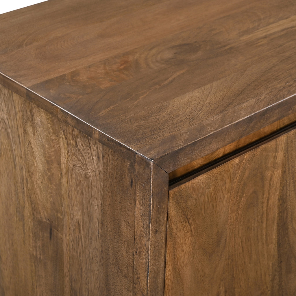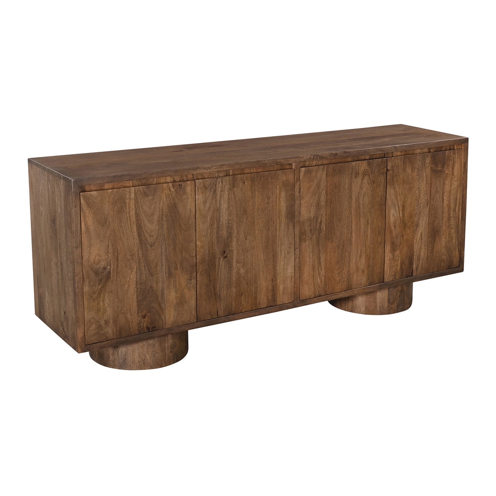 The Napa Server seamlessly blends modern and rustic elements, making it a versatile addition to any space. Crafted from brown mango wood, this 72" server features a minimalist design with overstated column-style legs and relief cuts in the doors for finger-pulls, enhancing its aesthetic appeal. Inside, you'll find two adjustable shelves and media cord management, offering practical storage solutions for your dining essentials. Hand-crafted with natural solid mango, each piece boasts unique variances in grain, adding to its rustic charm.