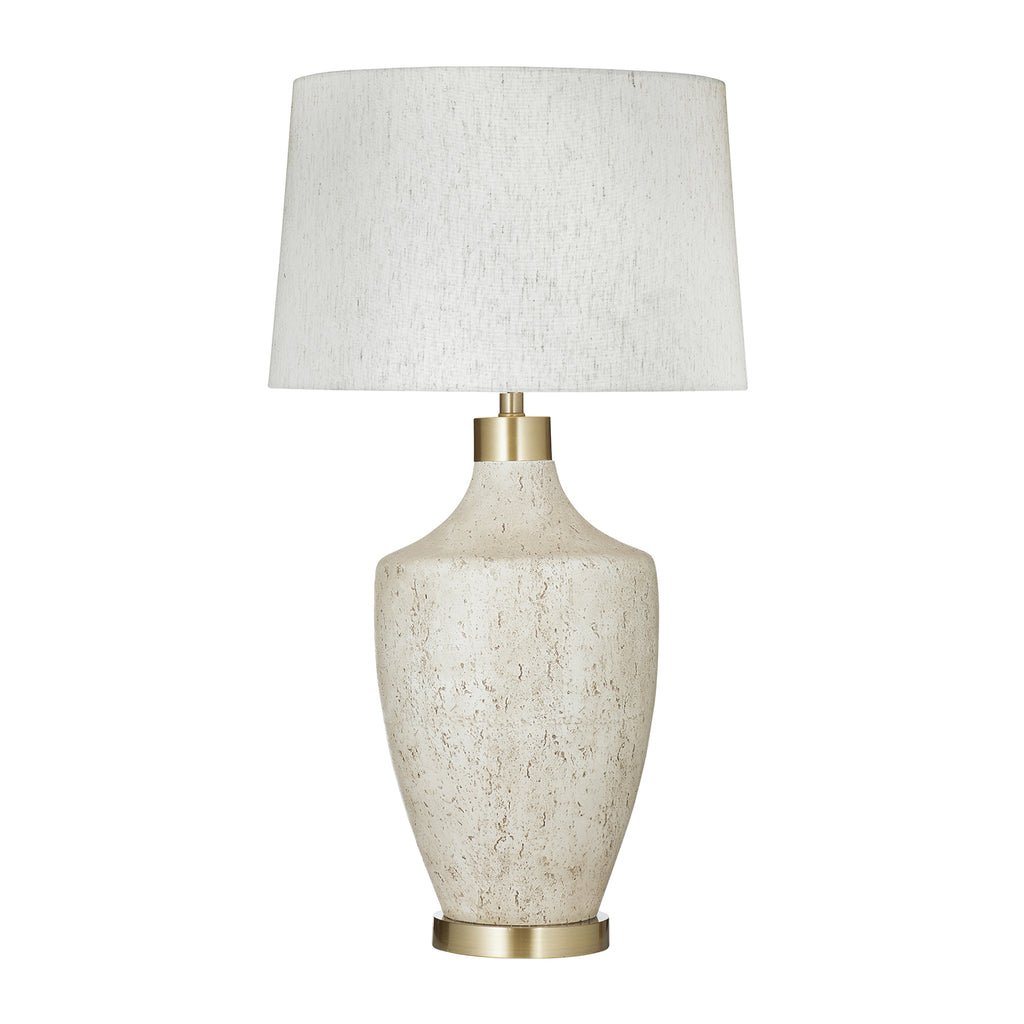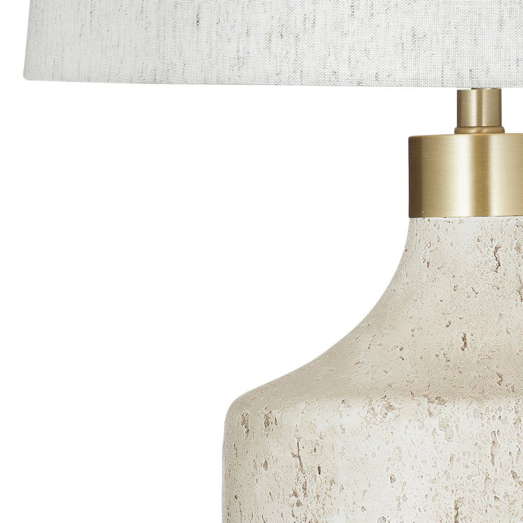 The Neecole Table Lamp features a modern stone-like base in soft neutral hues, complemented by elegant brass accents that add a touch of sophistication. The linen shade provides a soft, diffused light, creating a warm and inviting atmosphere. Its contemporary design and versatile color palette make it a perfect fit for various interior styles, blending seamlessly with both modern and traditional spaces. The Neecole Table Lamp combines style and function, offering a refined and practical lighting solution for any room.