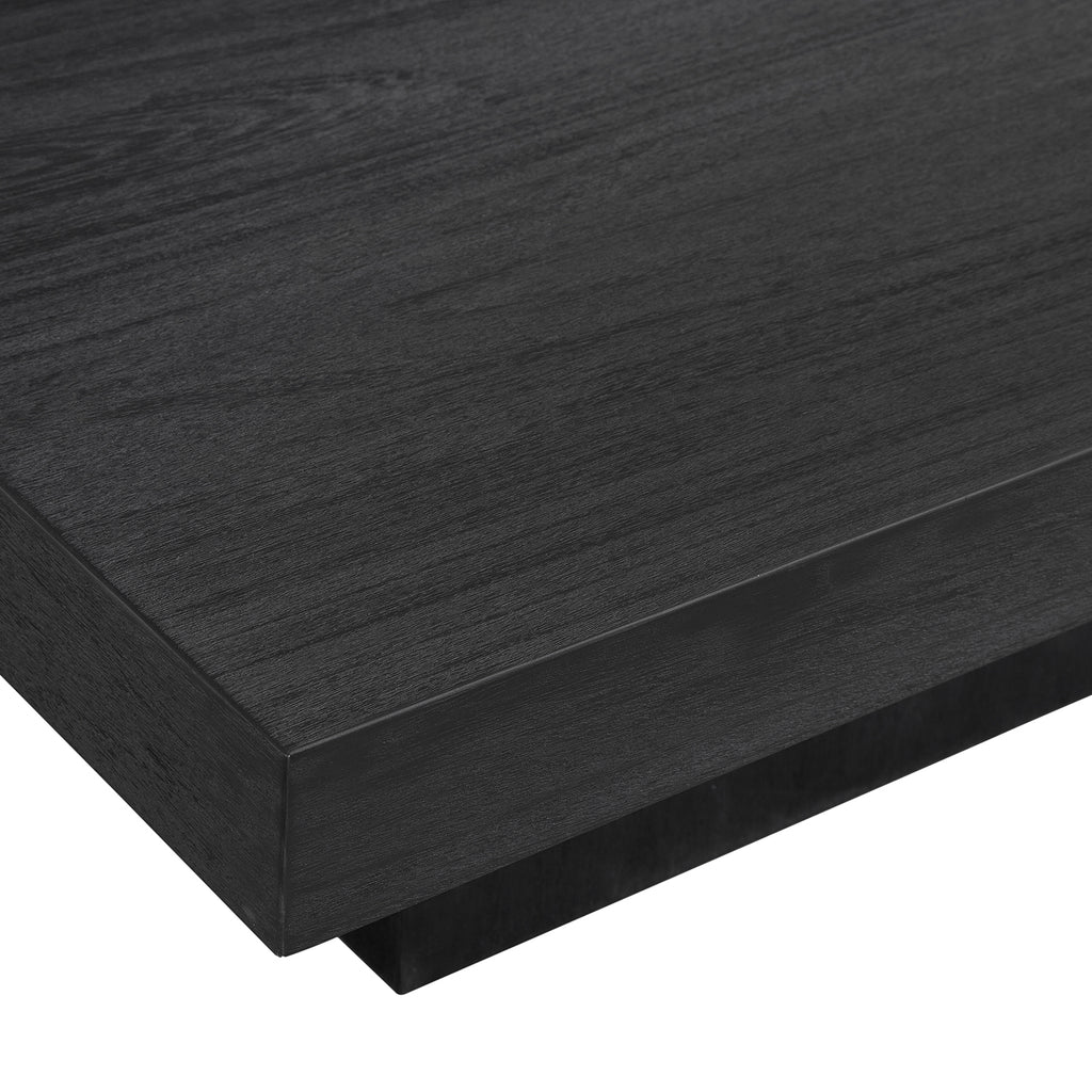 The Padula Cocktail Table exudes modern sophistication with its minimalist design and clean lines. Crafted from solid wood and mango veneers in a sleek matte black finish, this end table adds a touch of elegance to any space. Its matte black surface complements its sturdy construction, making it a stylish and functional addition to any space.