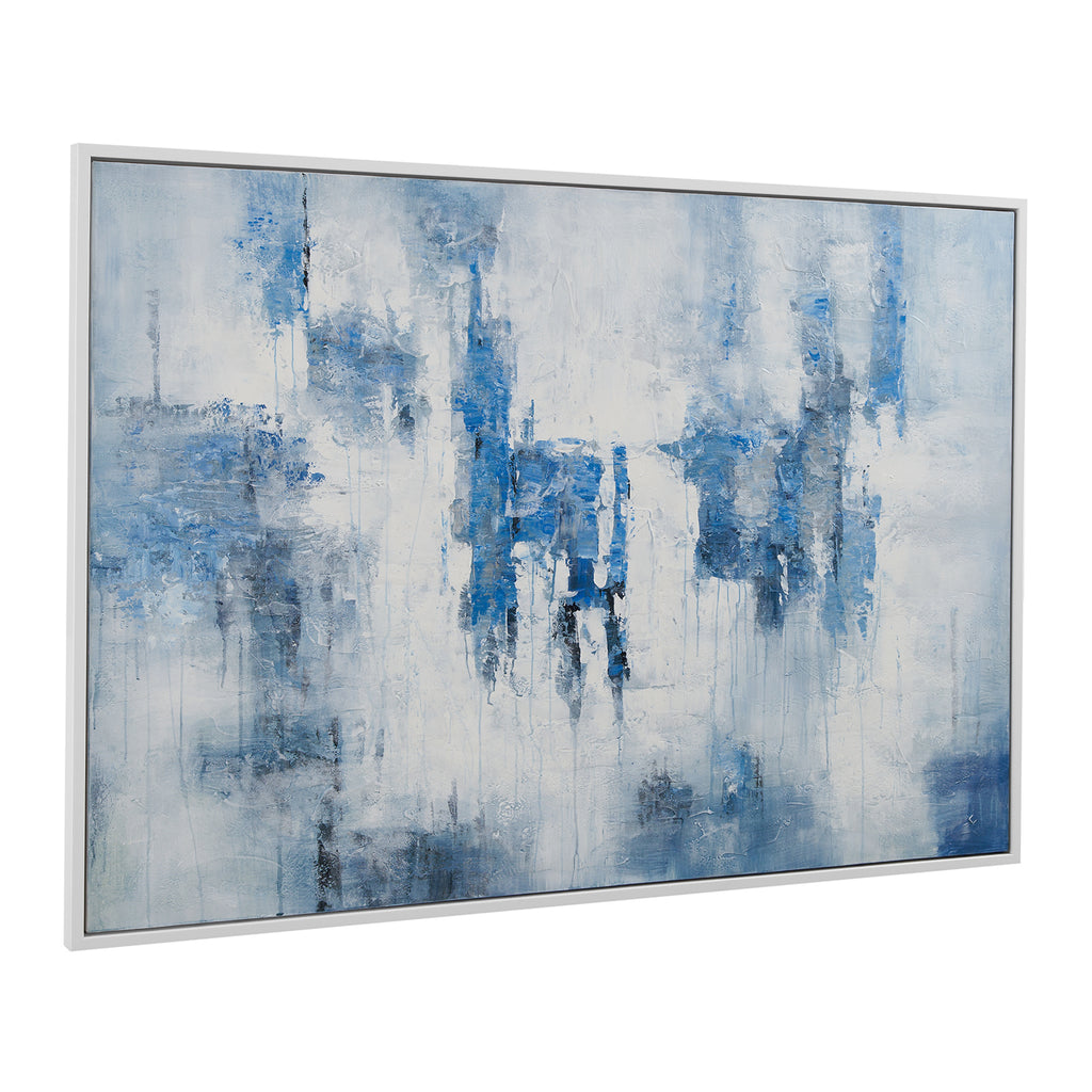 The Perdido Framed Canvas features a modern abstract design with coastal aesthetics, bringing a serene and calming vibe to any space. The blend of blue and white hues evokes the tranquility of the ocean, making it a perfect addition to rooms with a relaxed, coastal-inspired theme. Framed in sleek white, this canvas effortlessly complements a variety of interior styles, adding both visual interest and a peaceful atmosphere. Whether placed in a living room, bedroom, or hallway, the Perdido Framed Canvas is an ideal piece to enhance your home's decor with a contemporary, beachy flair