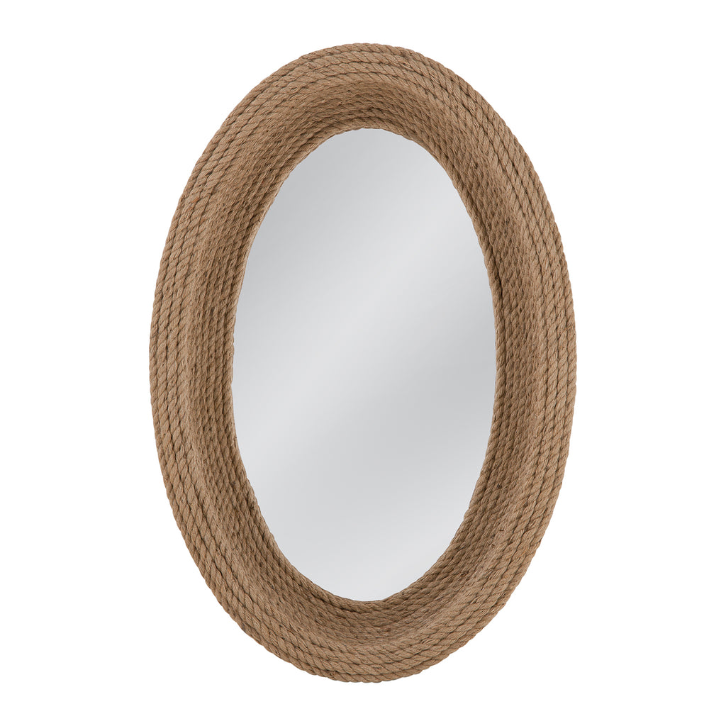The Regatta Wall Mirror boasts an oval frame crafted from natural jute rope, adding coastal flair to any space. Its intricate woven design evokes a sense of seaside tranquility, perfect for coastal-themed decor. Enhance your home effortlessly with this timeless and natural accent piece.