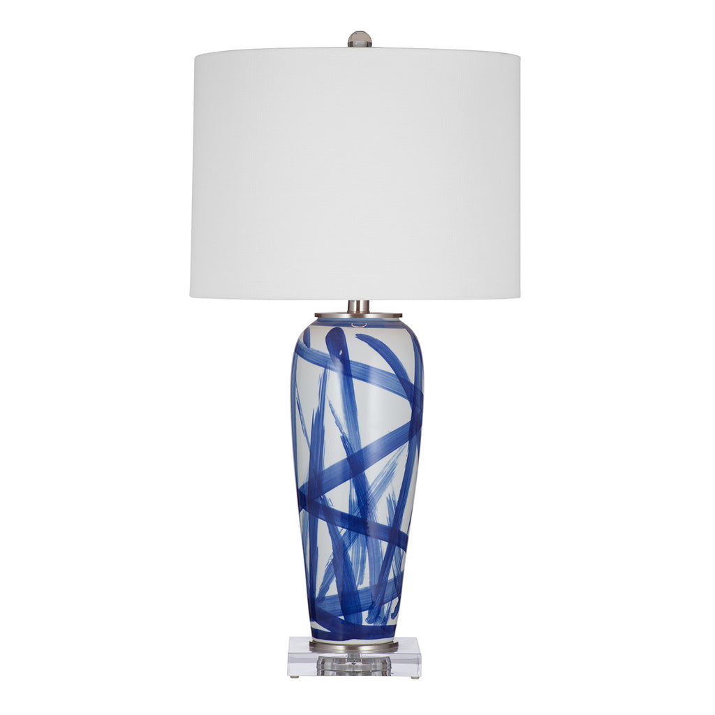 The Rianna Table Lamp is crafted of ceramic with a white drum shade.