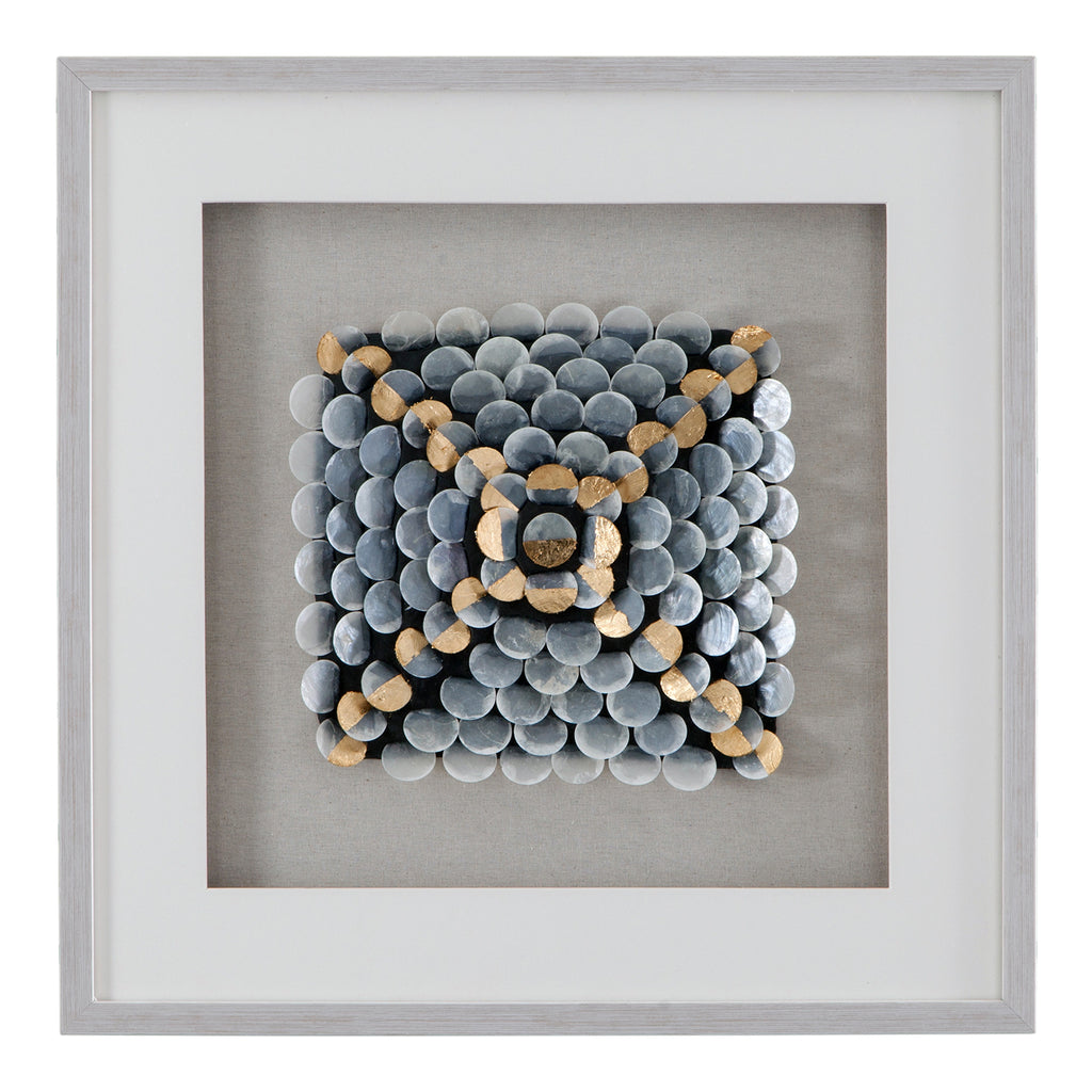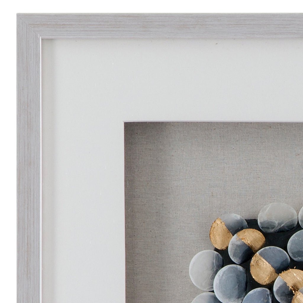 Roselle Wall Art is a shadow box accentuated with a neutral matboard and silver molding.