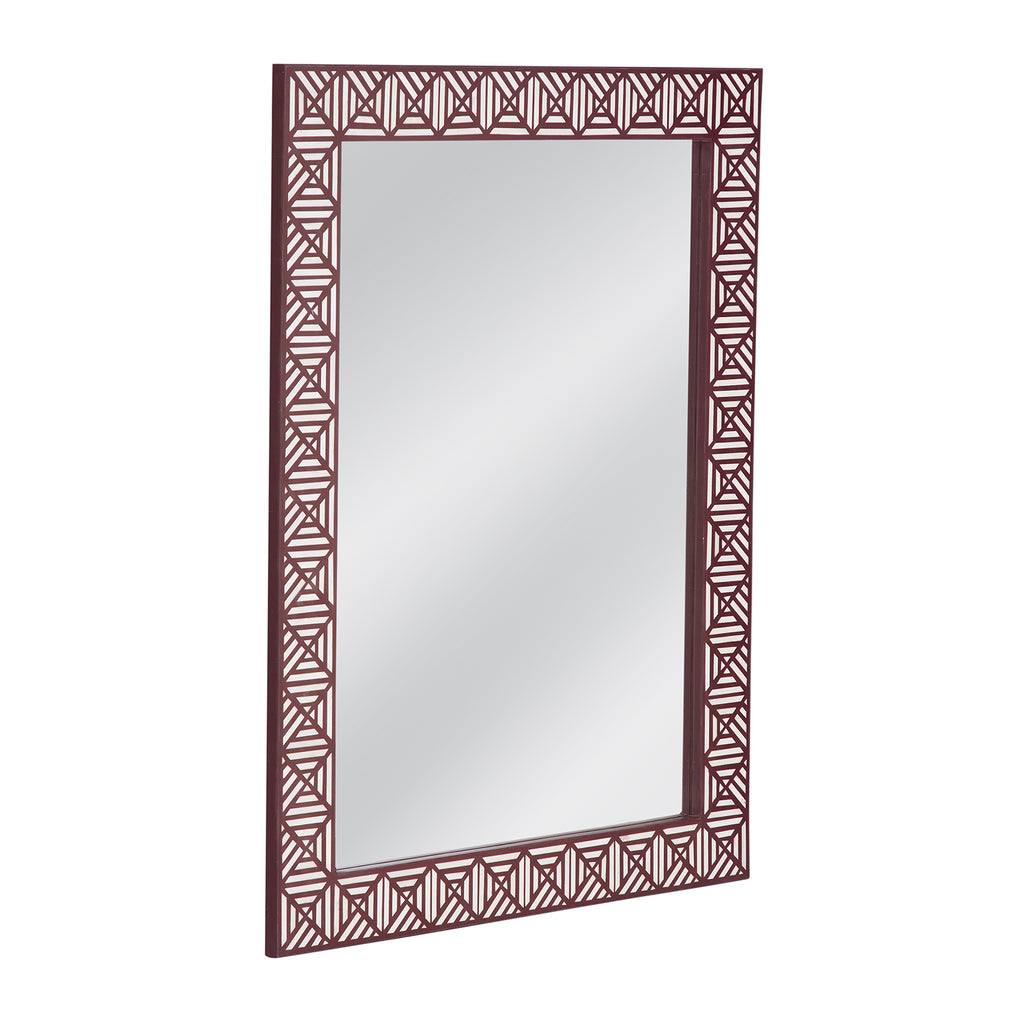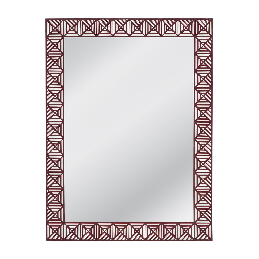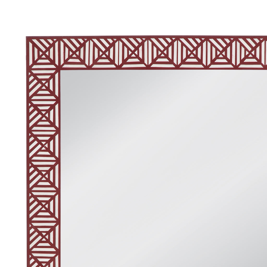 The Rouge Wall Mirror features a rectangular design adorned with intricate geometric patterns, blending boho and modern styles seamlessly. Its striking maroon and white finish exudes warmth and character, making it a captivating focal point in any room. Crafted with quality materials, this mirror adds a touch of personality and flair to your space while reflecting your unique sense of style.