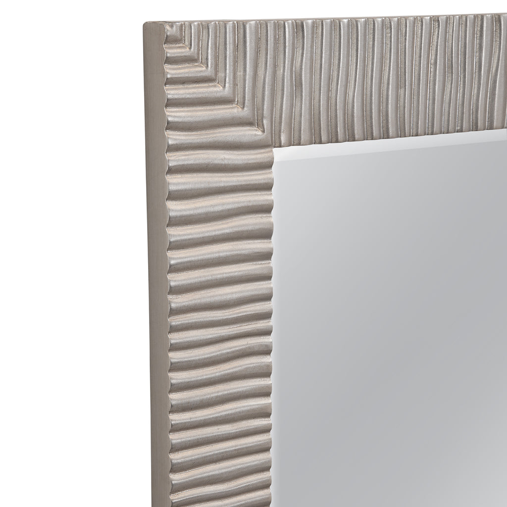 The Saydona Wall Mirror showcases a classic rectangular style with a ribbed texture, complemented by an antique silver leaf finish for timeless elegance. Its contemporary design is accentuated by a silver frame crafted from polyurethane, adding a modern touch to any space. Crafted with attention to detail, this mirror effortlessly blends classic and modern aesthetics, enhancing the ambiance of your room.
