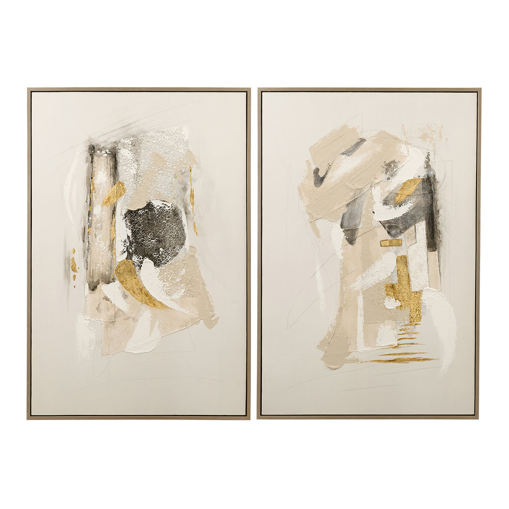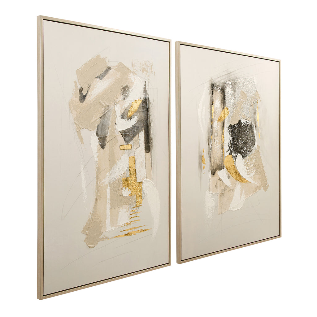 The Spencer Framed Canvas set of 2 exudes modern minimalism with its soft palette and gold accents. Each canvas is wrapped in a sleek canvas.