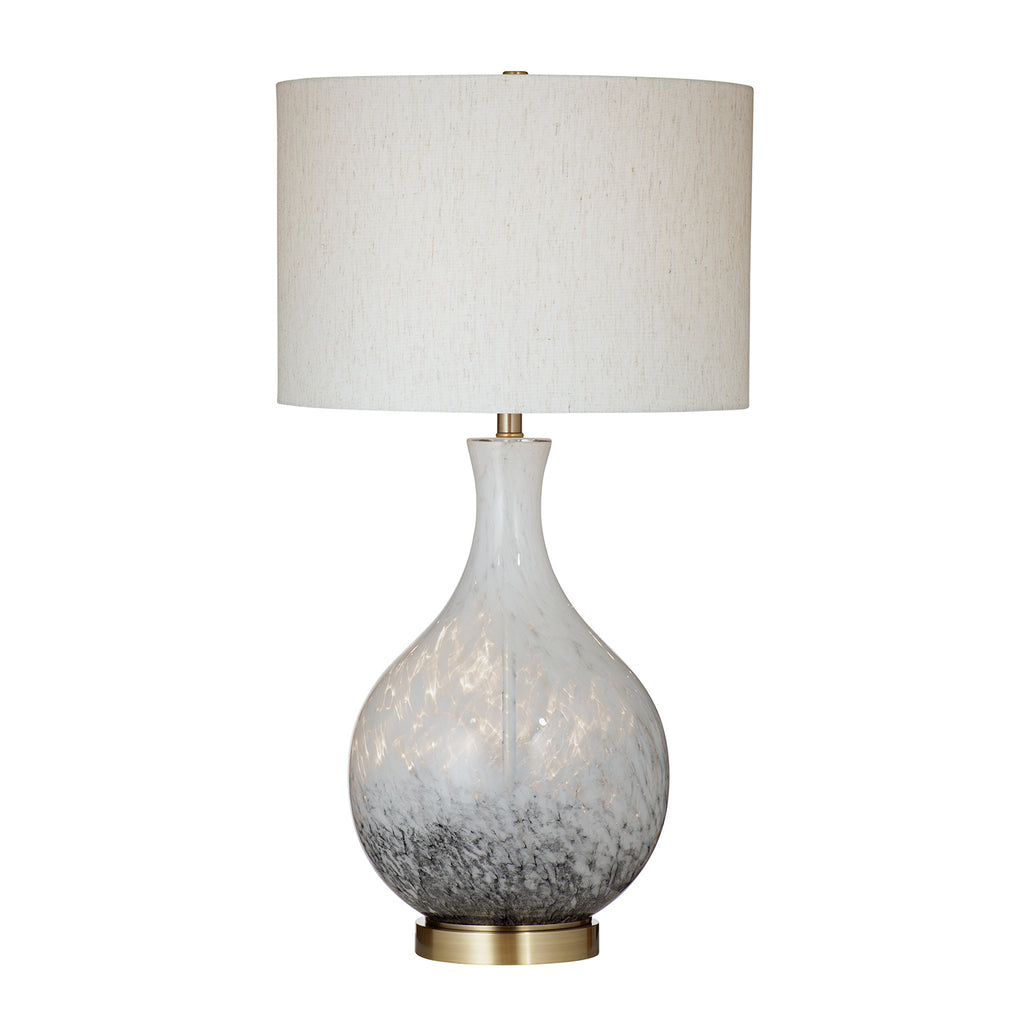 The Spey Table Lamp features a striking combination of white and black glass with elegant gold accents, offering a contemporary design that adds sophistication to any space. The clean, modern base is beautifully complemented by a linen drum-style shade, which softens the light to create a warm and inviting atmosphere. This lamp seamlessly blends style and function, making it a versatile addition to a variety of interior styles. The Spey Table Lamp is a perfect choice for bringing a touch of modern elegance to your home.