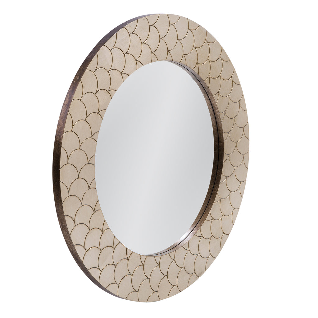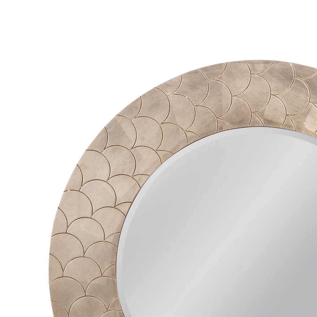 The Tetra Wall Mirror features a round, elegant coastal design with a unique scale-like printed frame finished in a soft champagne tone. This beautiful mirror brings a touch of coastal charm while offering a sophisticated and modern aesthetic. The delicate texture of the frame adds depth and visual interest, making it a standout piece in any room. The Tetra Wall Mirror is a versatile and stylish addition, perfect for brightening up your space with a refined, beach-inspired touch.