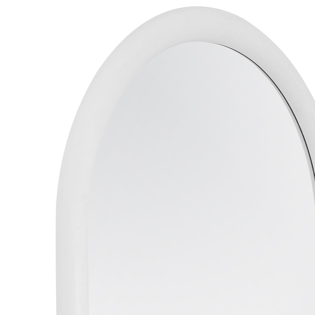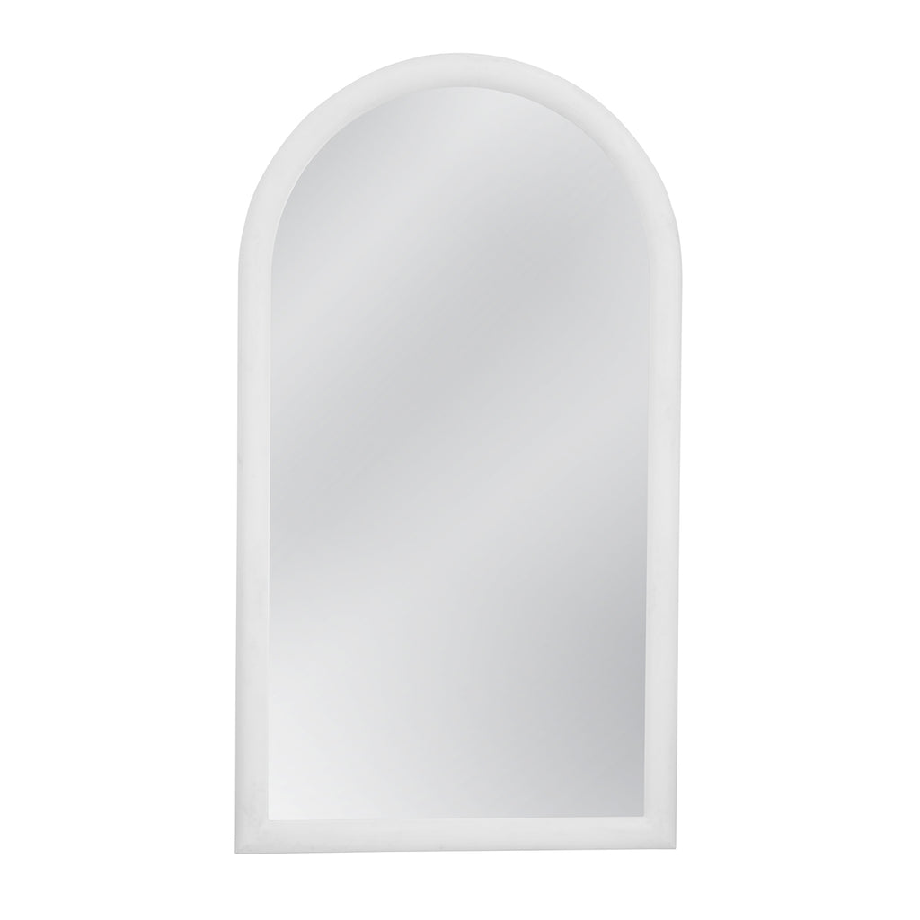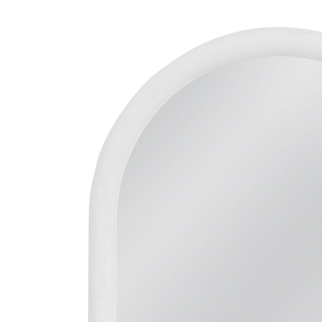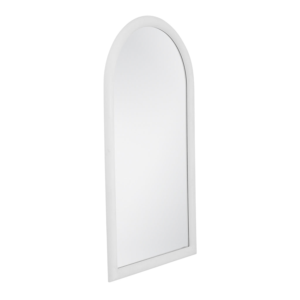 The Vega Floor Mirror features a contemporary arched shape with a smooth matte white finish, adding a sleek and modern touch to any room. Its clean lines and simple design make it a versatile piece that blends seamlessly with various interior styles. The mirrors large size enhances the sense of space and light in your room, making it both functional and stylish. The Vega Floor Mirror is perfect for creating a refined, yet understated focal point in your home decor.
