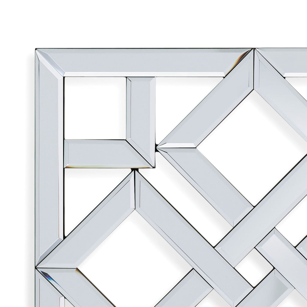 The stunning Vida wall mirror features a precise lattice design and beveled strips of clear mirror. This piece is an elegantly modern addition to any space.