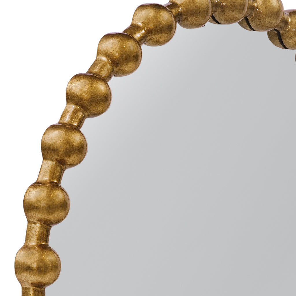 The Violette Wall Mirror boasts a modern round design with a luxurious gold leaf finish and elegant knob detailing on its frame. Its sleek and contemporary aesthetic adds a touch of sophistication to any room, elevating the overall decor effortlessly. This mirror not only serves its practical purpose but also enhances the ambiance by reflecting light and creating the illusion of space. With its timeless appeal and exquisite craftsmanship, the Violette mirror is a stylish and versatile addition to your home decor, bringing both functionality and beauty to any space.