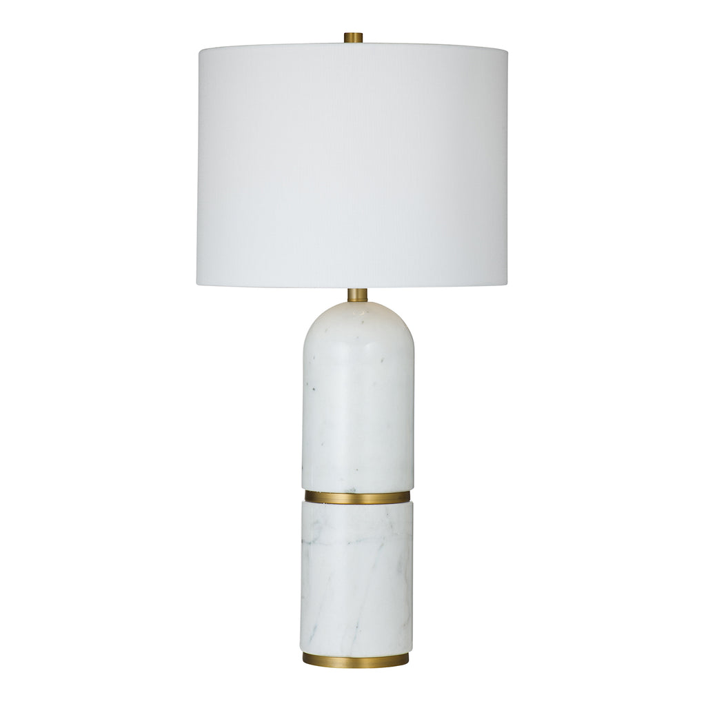 The Wake Table Lamp features a sleek marble pill-shaped base with brass accents, offering a modern and sophisticated look. Its contemporary design blends the timeless elegance of marble with the warmth of brass, creating a striking visual contrast. This lamp adds both style and functionality to any space, providing soft, ambient lighting while enhancing your homes decor. The Wake Table Lamp is a perfect choice for those looking to add a refined, contemporary touch to their interior.