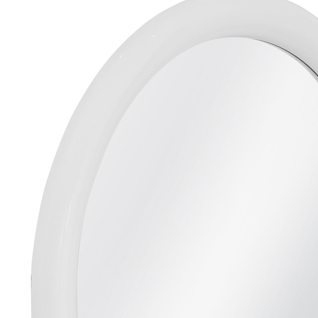 The Vega White Wall Mirror features a contemporary arched shape with a glossy white finish, bringing a sleek and modern touch to any space. Its clean lines and minimalist design make it a versatile piece that complements a variety of interior styles. The mirrors reflective surface enhances light and creates the illusion of more space, offering both style and functionality. The Vega White Wall Mirror is an ideal choice for adding a refined, understated focal point to your home decor.