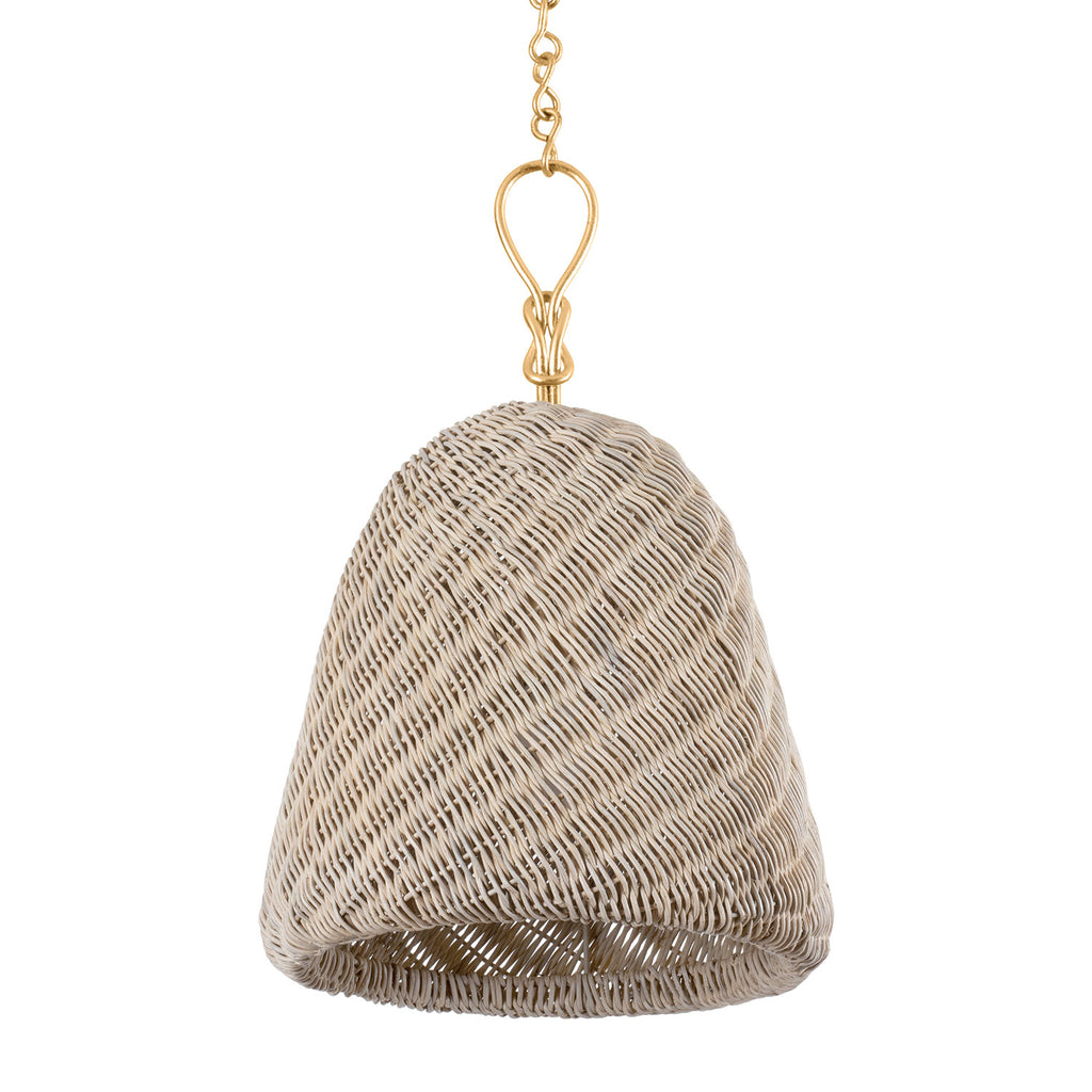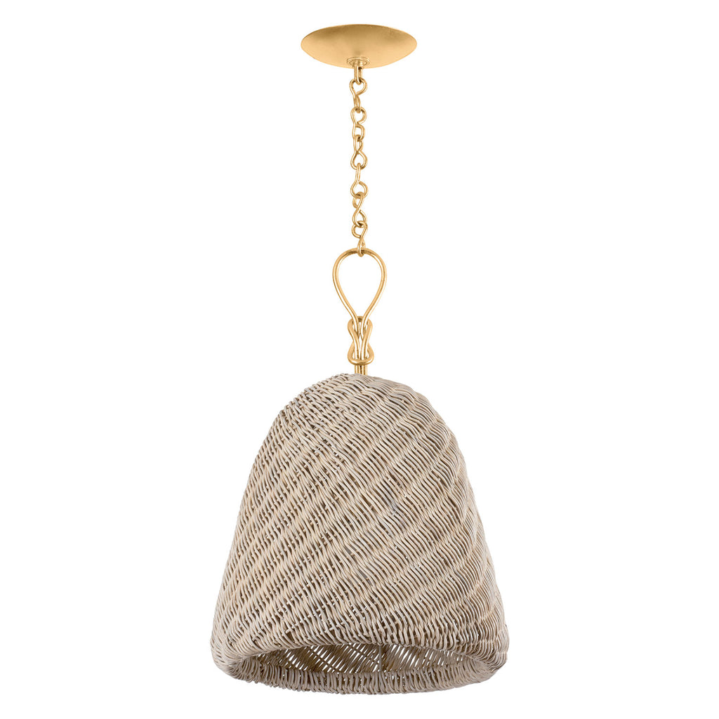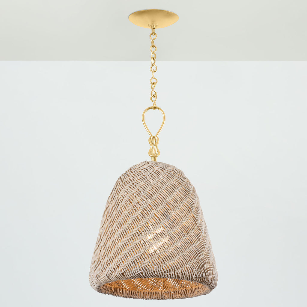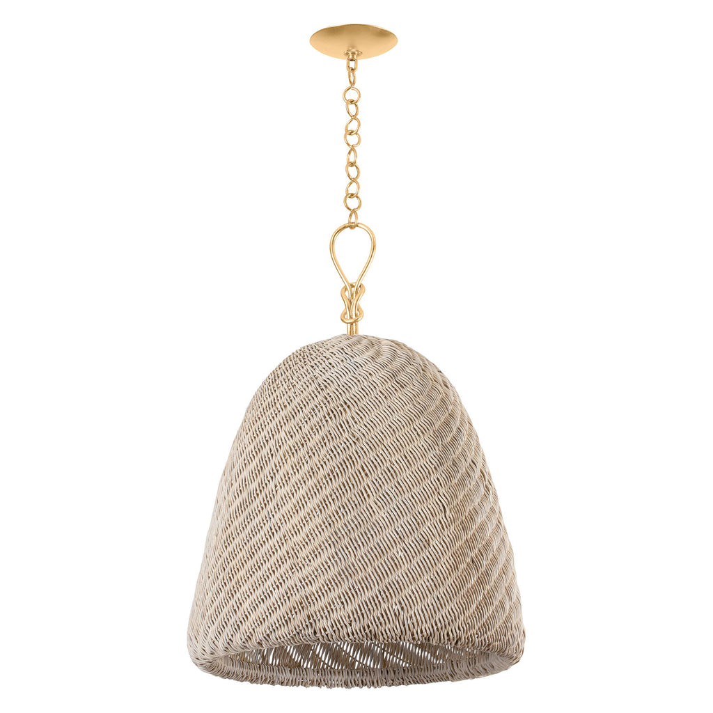 Renowned for built-to-last quality with a timeless feel, Hudson Valley offers a modern lighting collection with elegant touches, recalling vintage inspiration. As the queen of the coast, this natural rattan pendant elevates a handwoven basket aesthetic to a statement piece. Suspended by a thick Gold Leaf chain and intricate knot, it nods to the nautical with a luxurious undertone. The combination of rustic organicism and upscale accents makes for a characterful and compelling fixture. Available in two sizes.