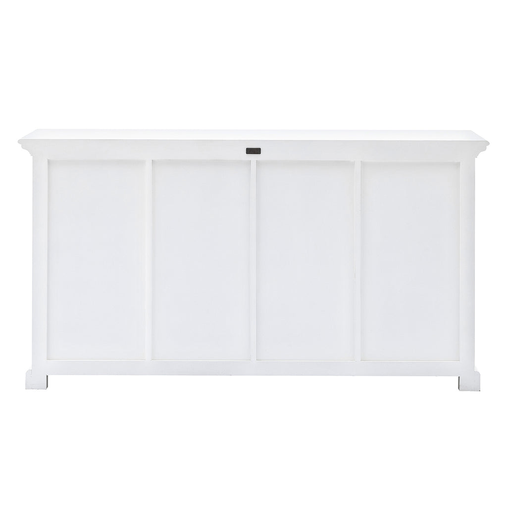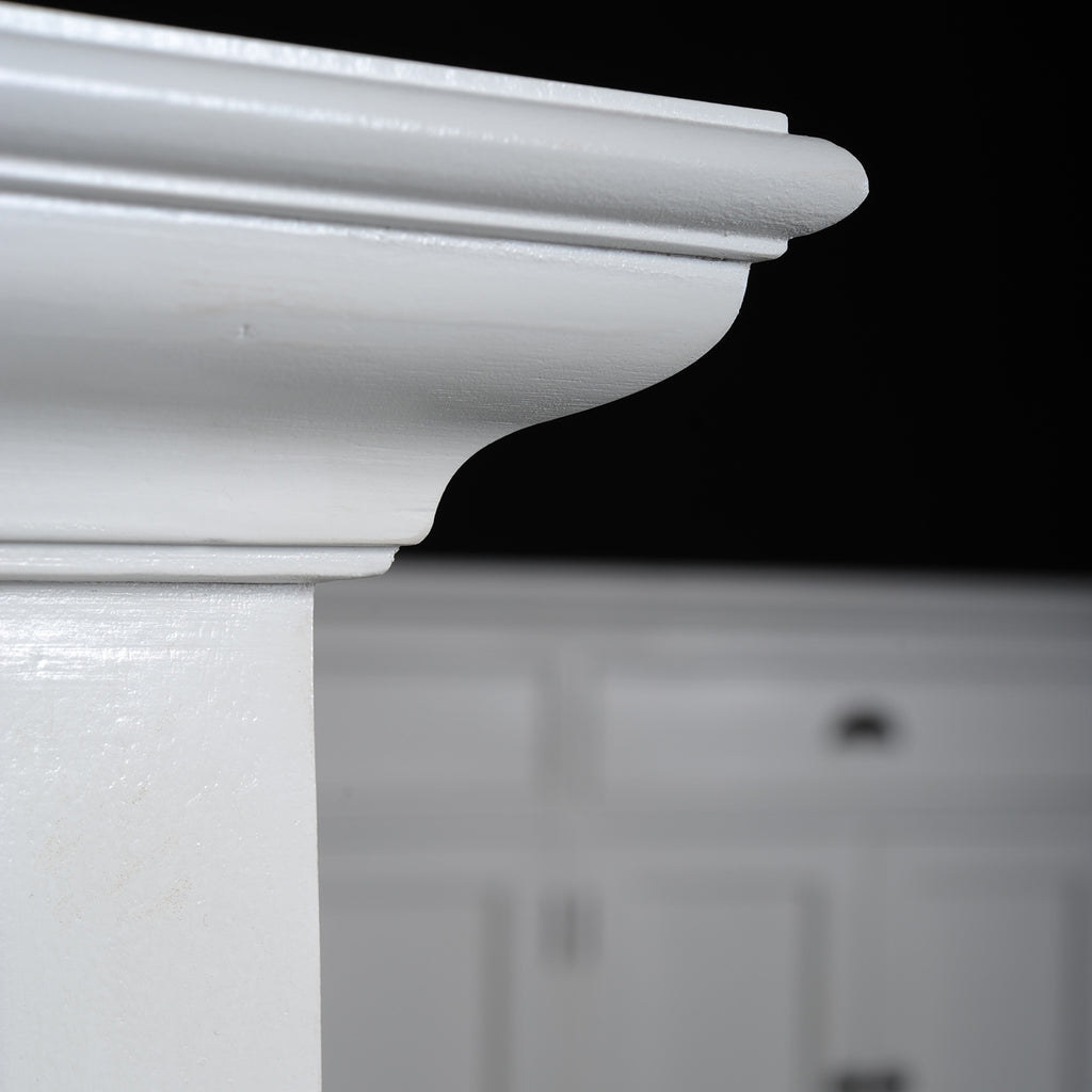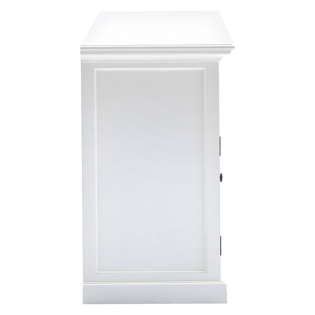 Beckton combines the quaint charm of the French Countryside with the coastal flair of the Eastern Seaboard to form a comprehensive range befitting the dining area, living space or bedroom. Detailed profiling on each piece, together with the warm finishing and antique brass hardware, provides a classic collection for the contemporary home.  Buffet or sideboard? You choose what to call it - but a storage showpiece like this almost needs no label. From dining room to home office, it’s a piece that translates into more spaces than one. Think table linens, placemats and cutlery in its hand-woven kubu rattan baskets – or maybe spare paper, stationery essentials and children’s coloring crayons. The fixed shelving behind shaker style doors offer additional storage.