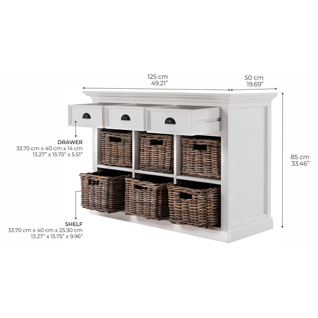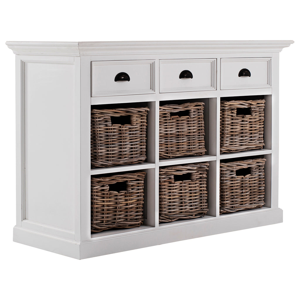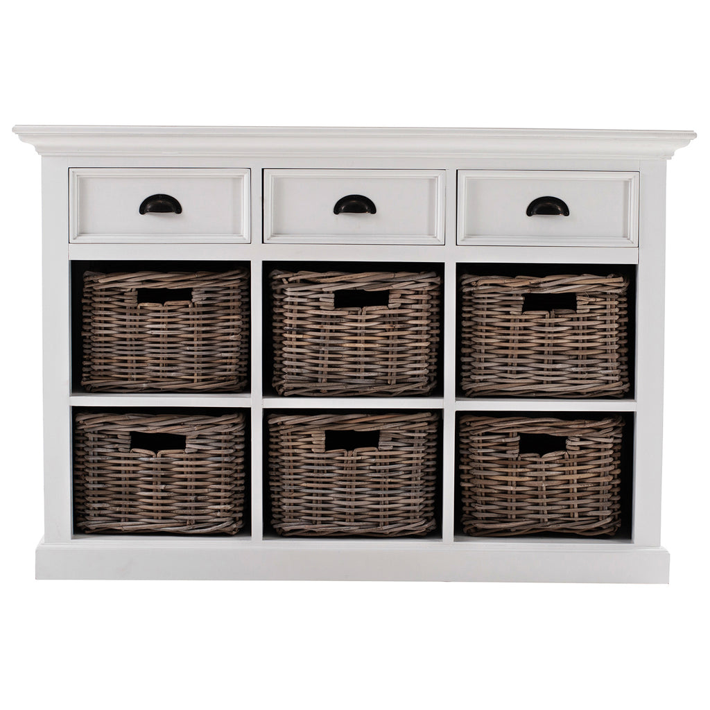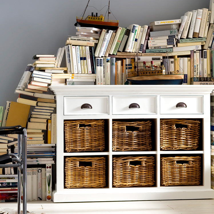 Beckton combines the quaint charm of the French Countryside with the coastal flair of the Eastern Seaboard to form a comprehensive range befitting the dining area, living space or bedroom. Detailed profiling on each piece, together with the warm finishing and antique brass hardware, provides a classic collection for the contemporary home. Buffet or sideboard? You choose what to call it – but a storage showpiece like this almost needs no label. From dining room to home office, it’s a piece that translates into more spaces than one. Think table linen, placemats and guest crockery in its hand-woven rattan baskets – or maybe spare paper, stationery essentials and children’s coloring crayons.