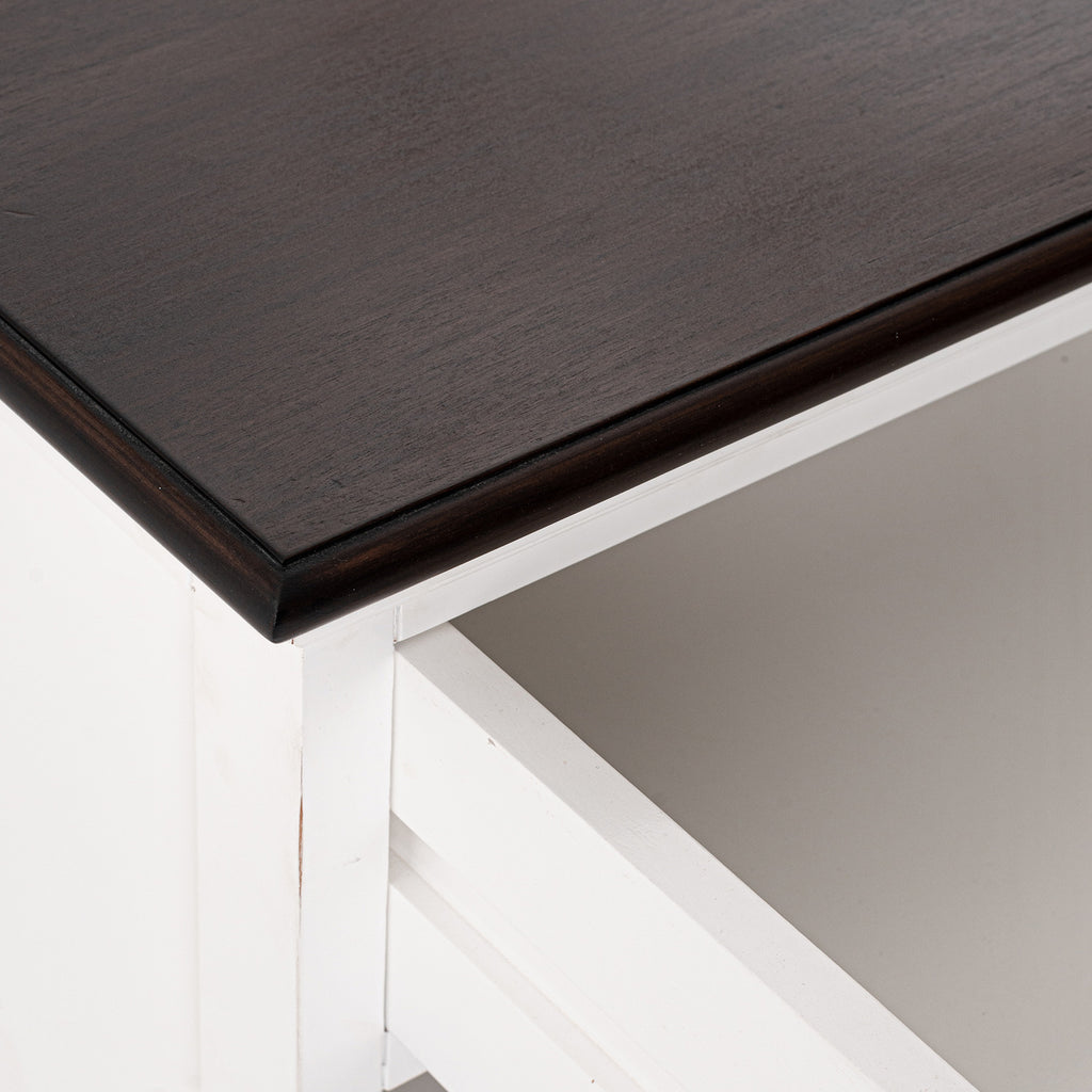 • Finish: White Distress & Deep Brown with Antique Brass hardware