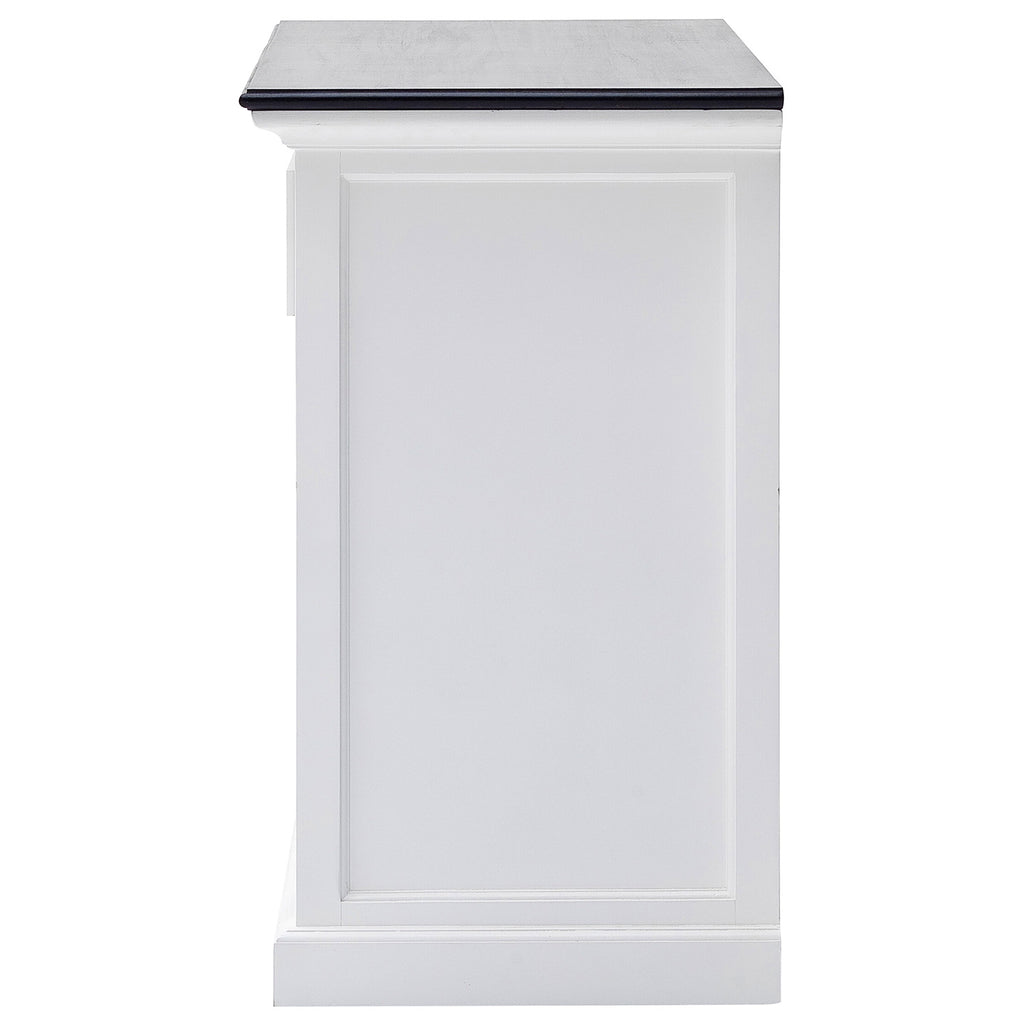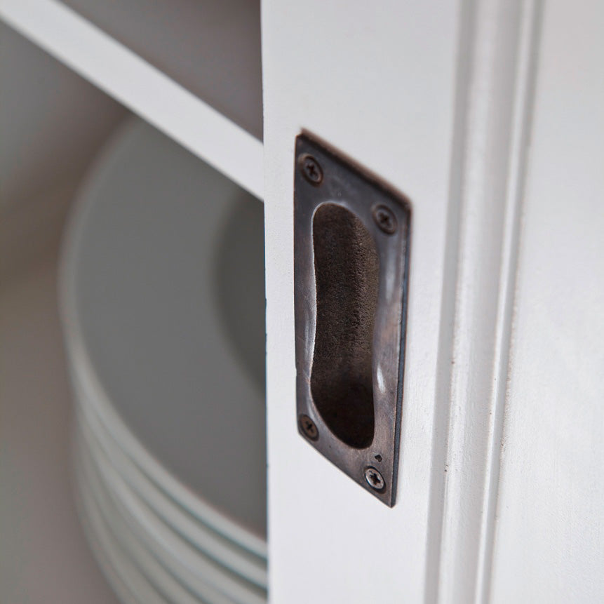 It’s the difference in color that makes an object distinguishable. Beckton Contrast introduces a limited selection of our classic white furniture with a black painted top. The contrasting top against its subtle white base gives each piece a new edge and attitude. A go-anywhere design. Dining room buffet for storing dinner party essentials. Home office hero for paperwork and coloring crayons. Hallway sideboard for tidying away everyday essentials and displaying a fresh bouquet. Or even a kitchen staple, like a scaled-down dresser. And slide. Not only do sliding cupboard doors look good, but they serve a purpose too. Say you want a storage piece but in a tricky space where opening cupboard doors might prove difficult, sliding doors are the perfect solution. And don’t forget the drawers on top. It’s in the detail. The antiqued hardware is in the form of traditional cup handle and is made from solid brass. And then there’s the period-style panelling and bevelled drawer fronts.
