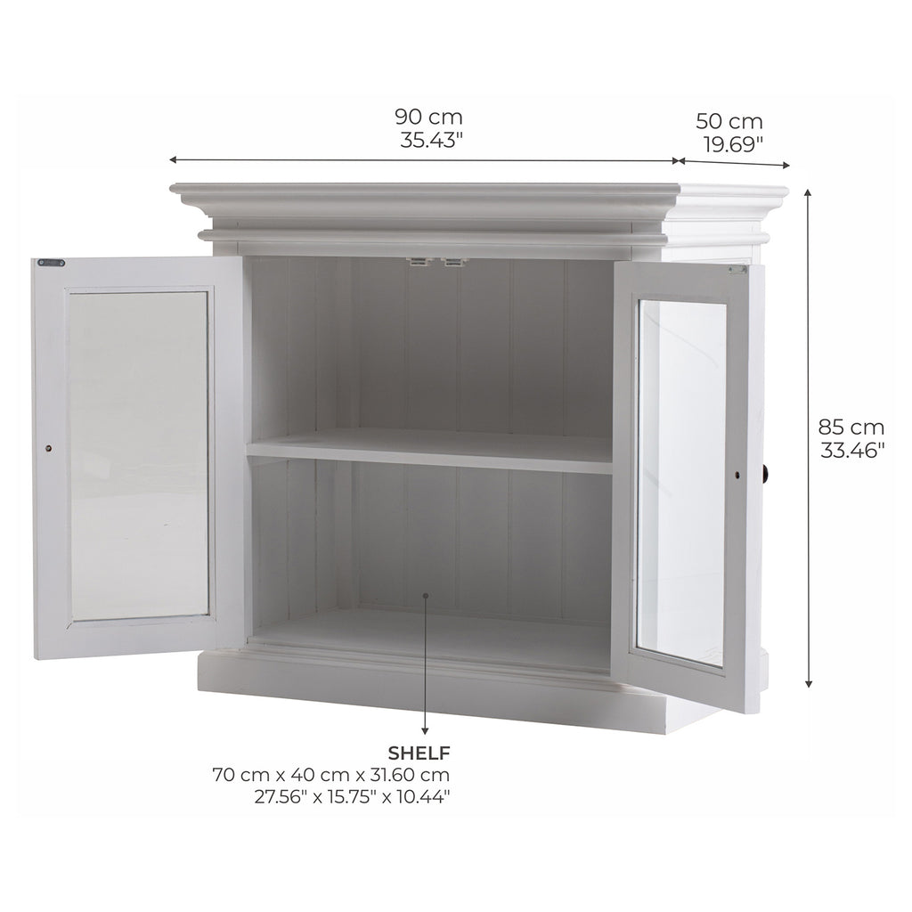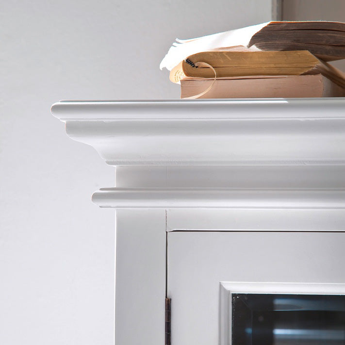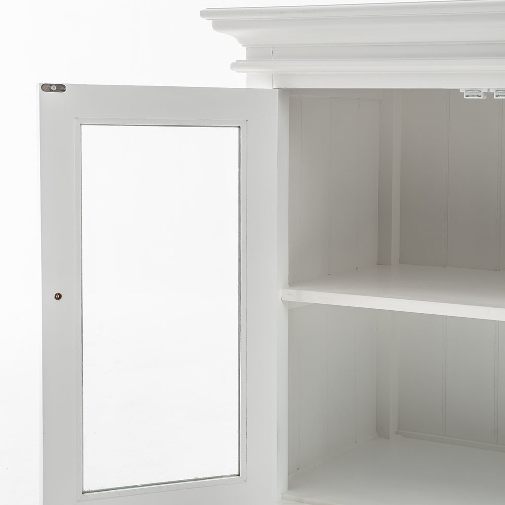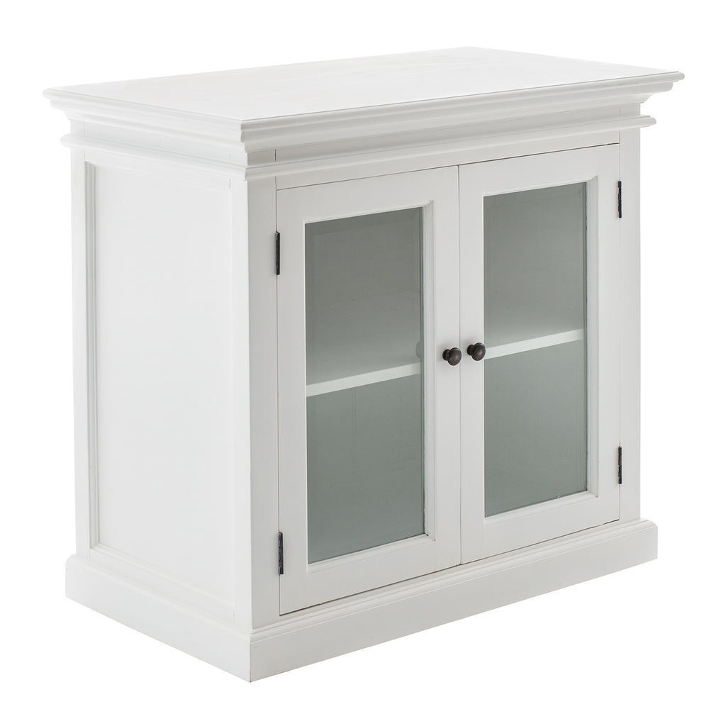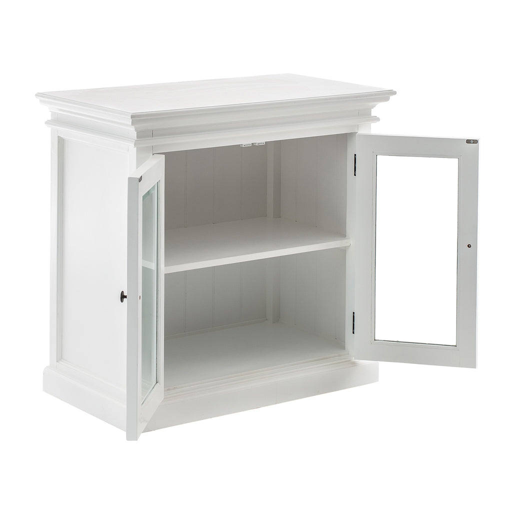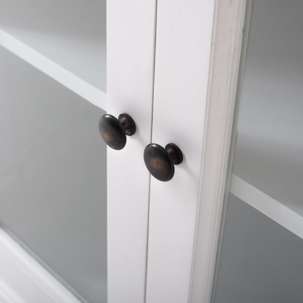 Beckton combines the quaint charm of the French Countryside with the coastal flair of the Eastern Seaboard to form a comprehensive range befitting the dining area, living space or bedroom. Detailed profiling on each piece, together with the warm finishing and antique brass hardware, provides a classic collection for the contemporary home. A buffet is worthy of being called a ‘go anywhere piece’. Upstairs, downstairs. Living room storage piece, hallway display surface. Bathroom floor-standing vanity cabinet, home office filing favorite. This Beckton Display buffet is essentially a small-scale sideboard with two rows of shelf space and glass doors to turn whatever you fill it with into a showcase.