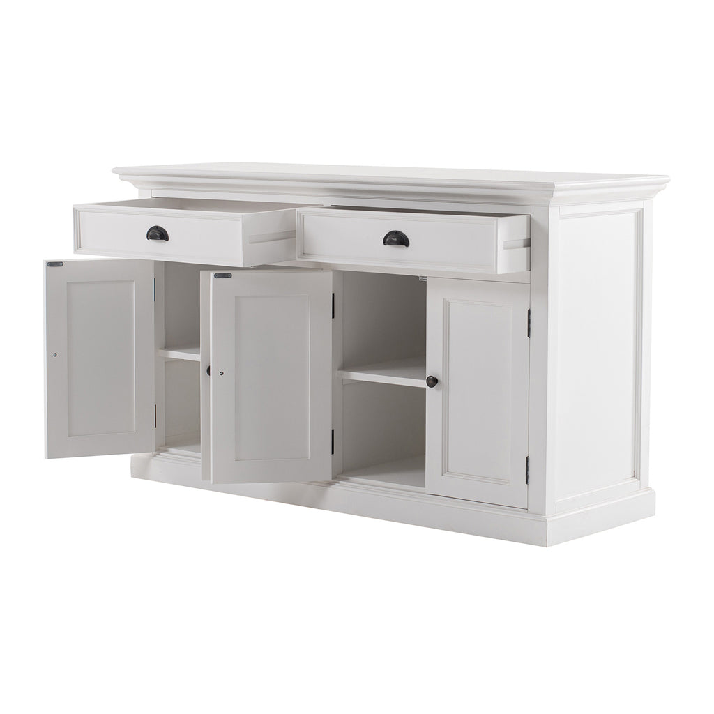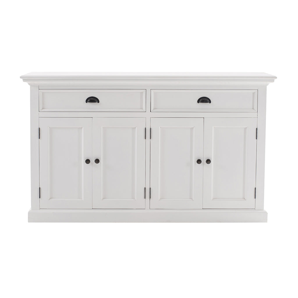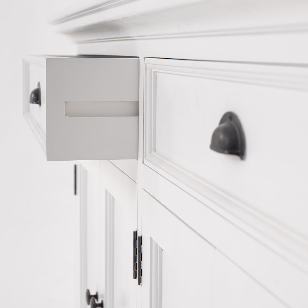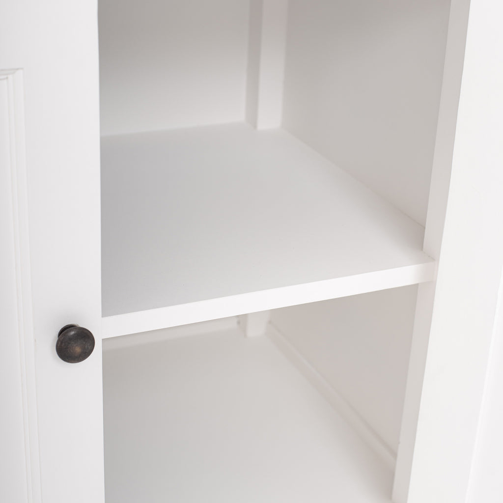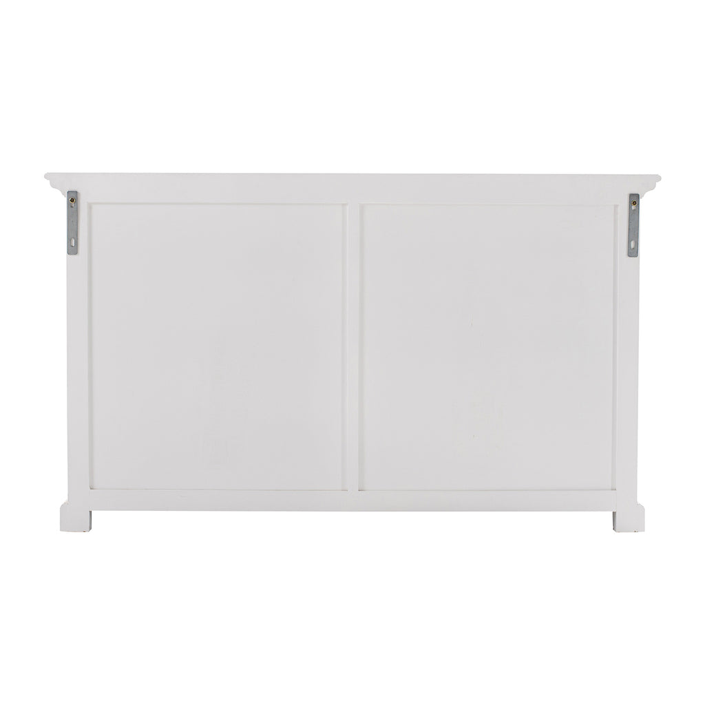 Beckton combines the quaint charm of the French Countryside with the coastal flair of the Eastern Seaboard to form a comprehensive range befitting the dining area, living space or bedroom. Detailed profiling on each piece, together with the warm finishing and antique brass hardware, provides a classic collection for the contemporary home. Generously proportioned and versatile Hutch/Bookcase can make its home in your living room or bedroom. Two separate components, working together to create ideal storage. The base unit, with its combination of drawers and deep shelving, can be home to personal items or linens. The upper shelving unit features glass doors opening on to fixed shelving. Detailed beadboard wainscoting acts as an attractive backdrop for books or collectibles.