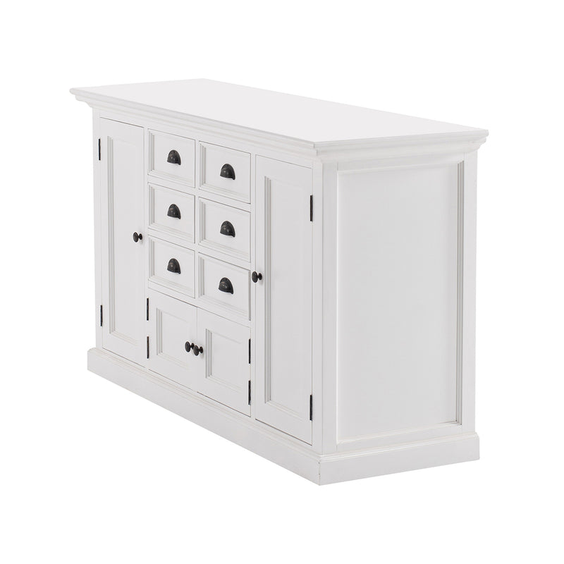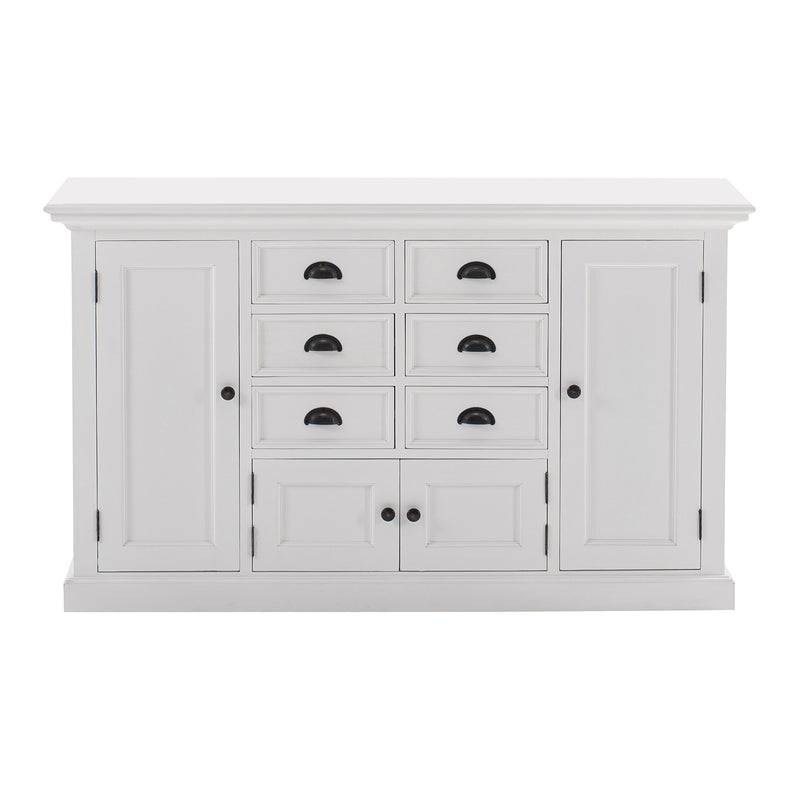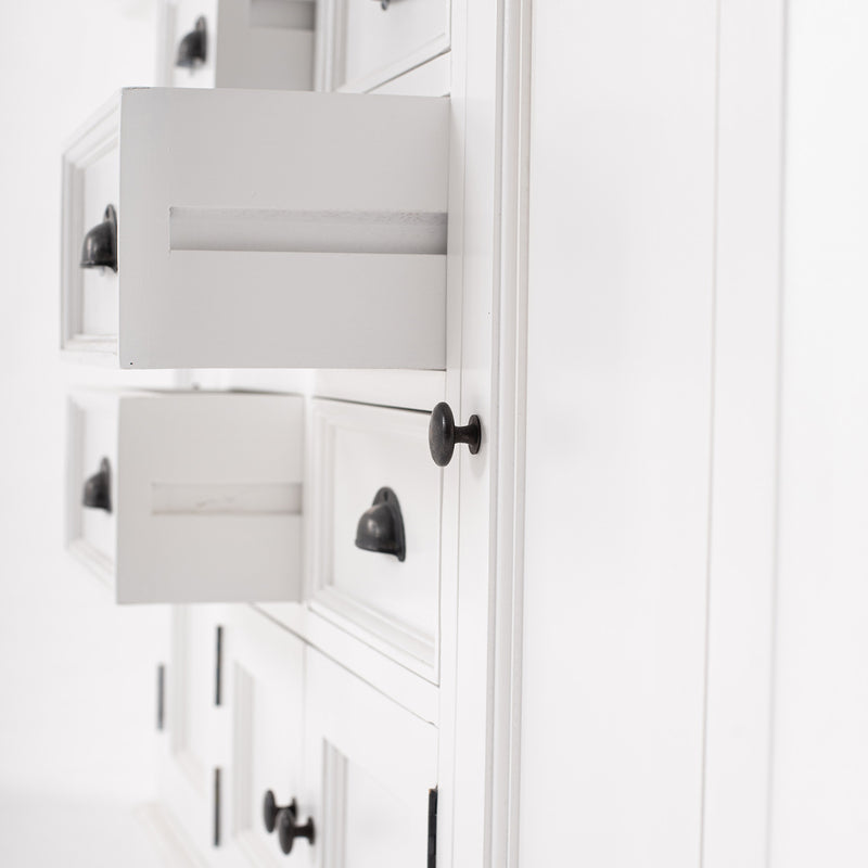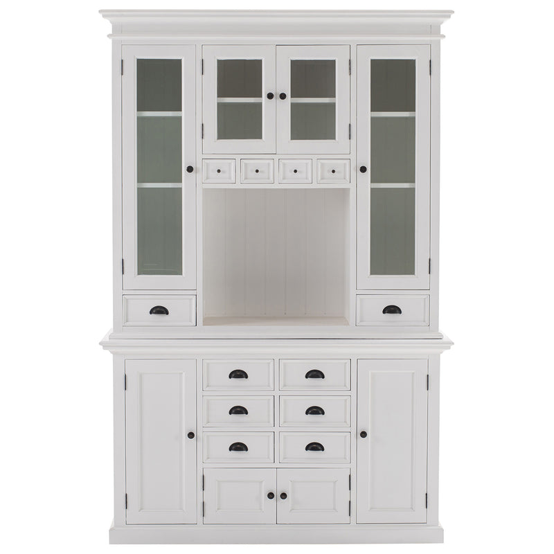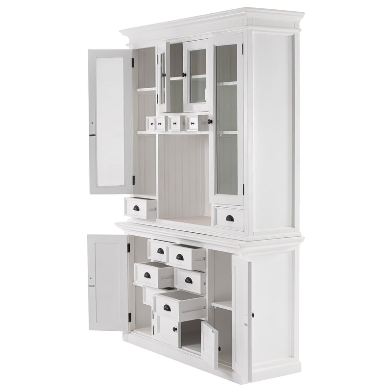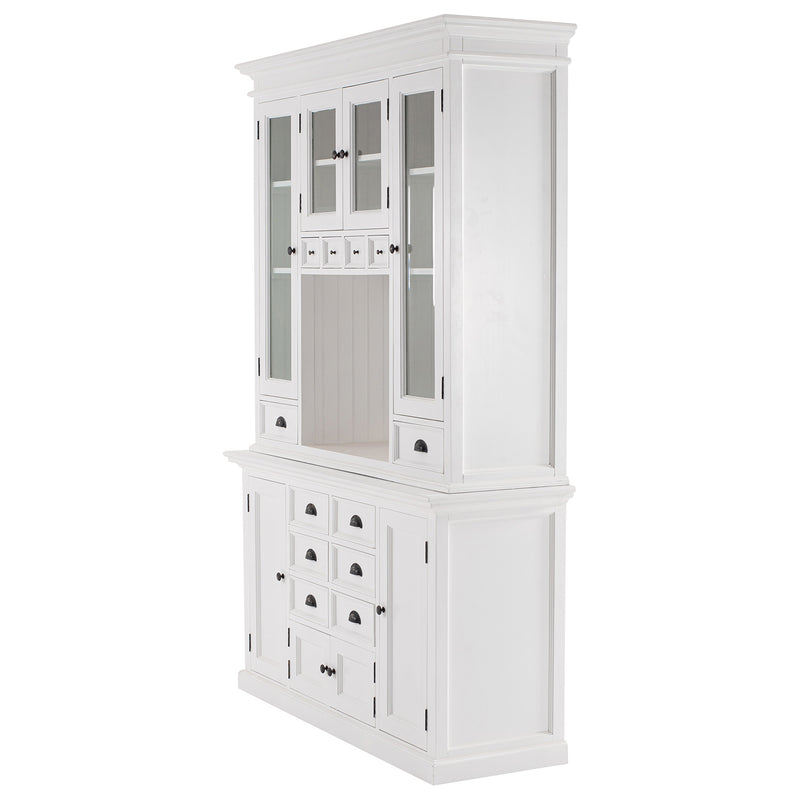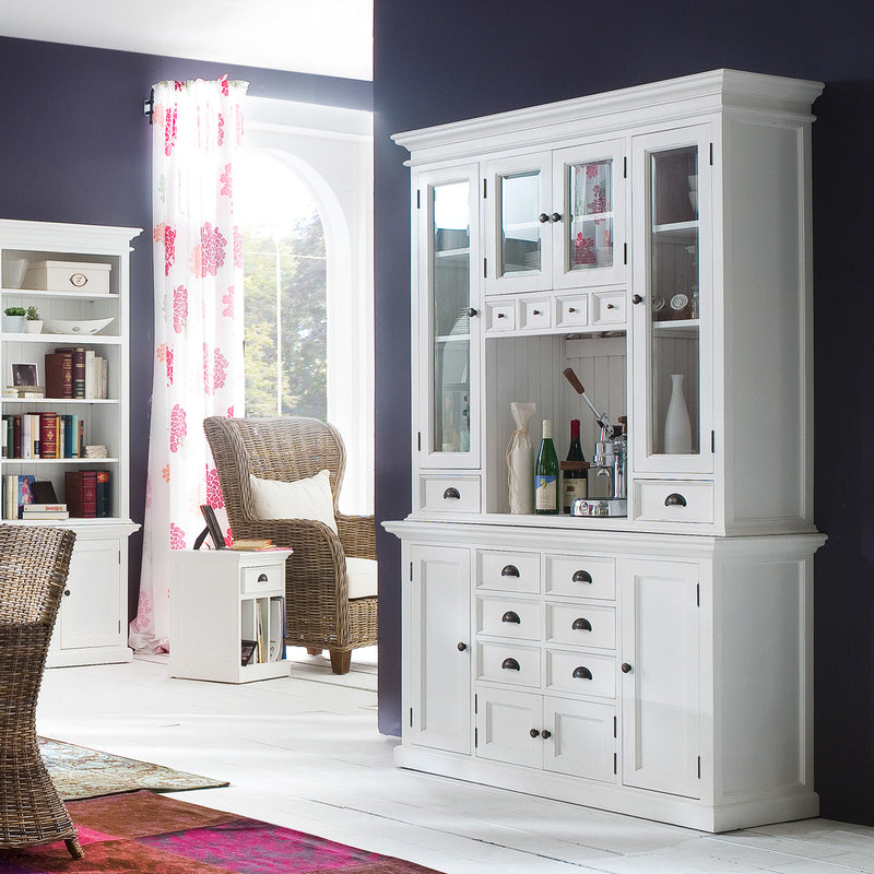 Beckton combines the quaint charm of the French Countryside with the coastal flair of the Eastern Seaboard to form a comprehensive range befitting the dining area, living space or bedroom. Detailed profiling on each piece, together with the warm finishing and antique brass hardware, provides a classic collection for the contemporary home. The perfect storage solution for your kitchen or dining room. Functionality is the key. Glass inserts in Shaker Style doors offer a glimpse at some of your favorite collectibles. The variation in drawer dimensions brilliantly accommodates any of your needs, small or large. The central recess, highlighted with attractive beadboard wainscotting, can function as a coffee or wine bar, or simply display some of your favorite cookbooks.