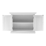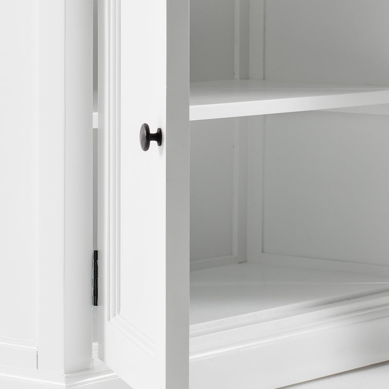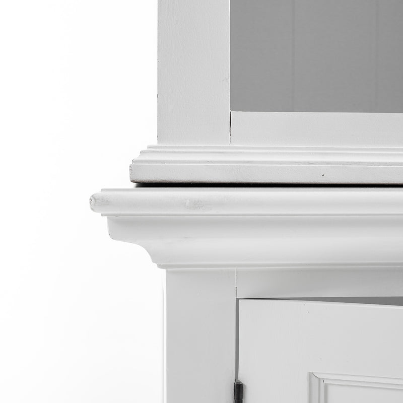 Beckton combines the quaint charm of the French Countryside with the coastal flair of the Eastern Seaboard to form a comprehensive range befitting the dining area, living space or bedroom. Detailed profiling on each piece, together with the warm finishing and antique brass hardware, provides a classic collection for the contemporary home. Hutch Unit for all your storage needs. Attractive wainscoting provides a subtle backdrop to the upper open shelving unit. Base units feature shaker style doors with antique brass hardware. Molding and decorative trim are further enhanced by the semi-gloss painted finish.