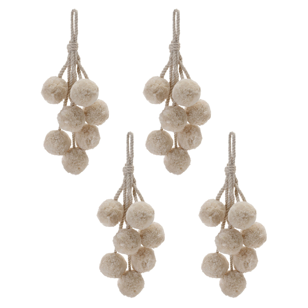 Beige Pom Pom Cluster Drop Ornament Set of 4