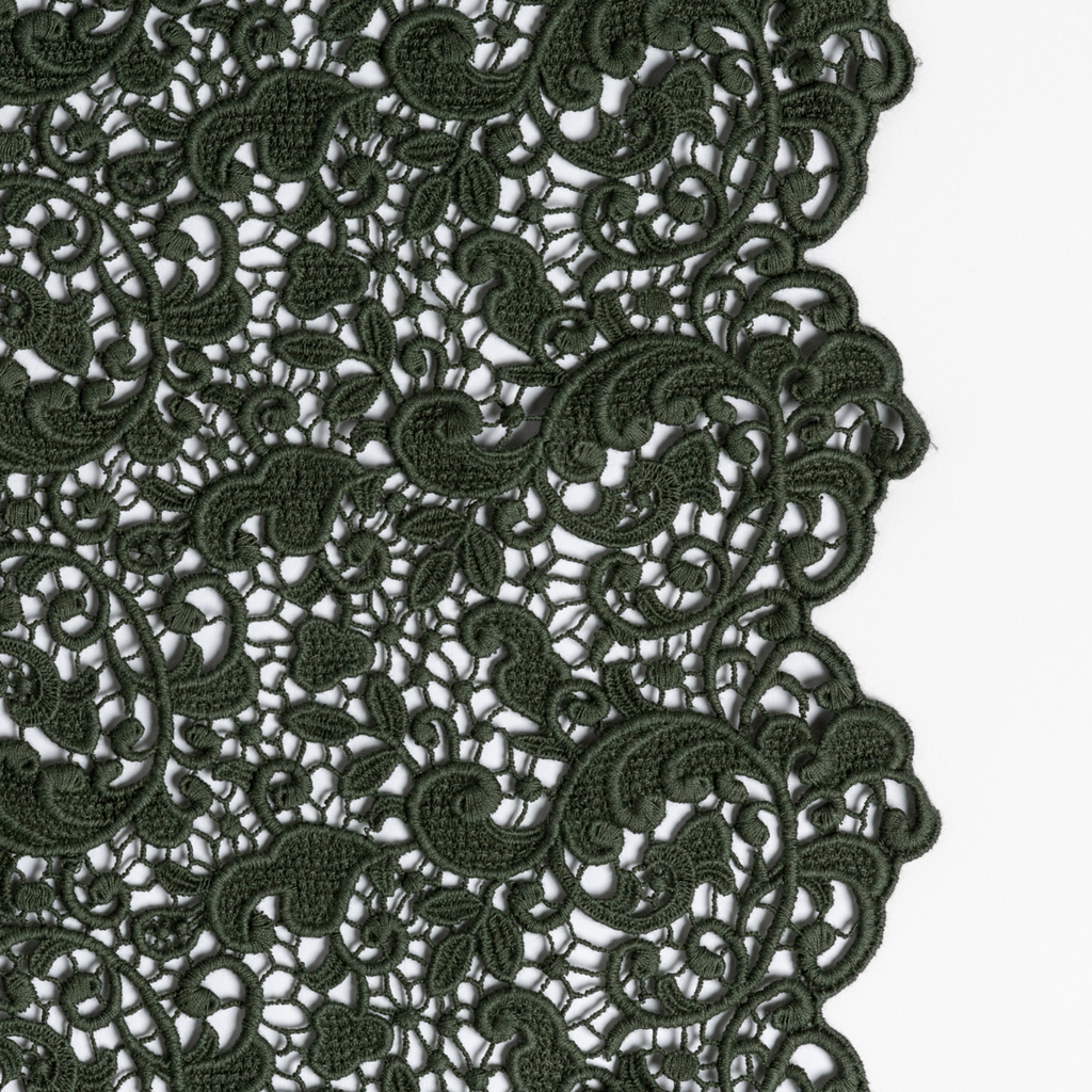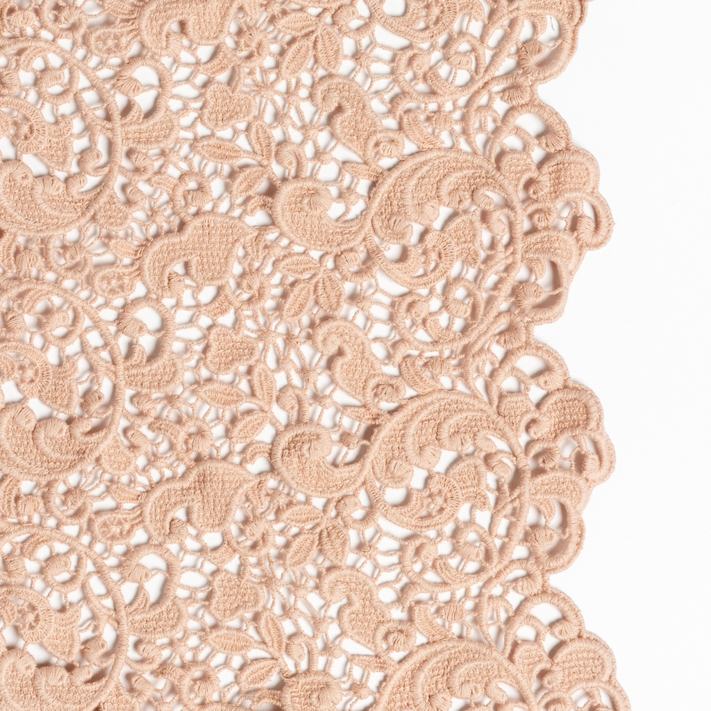 • Gathered cotton lace with scalloped edges, 22" adjustable drop, 3 panels