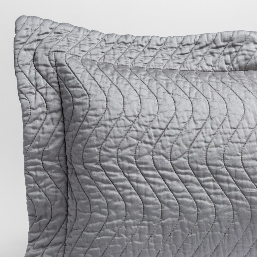 Soothing ripples quilt 600-thread count cotton sateen shams in the Bella Notte Cirillo collection. Finished with a clean edge, a flange trims the pillow inserts for an impressive display at the head of the bed. Backed in unquilted cotton sateen, the zipper closure makes removing the inserts before laundering an uncomplicated task.