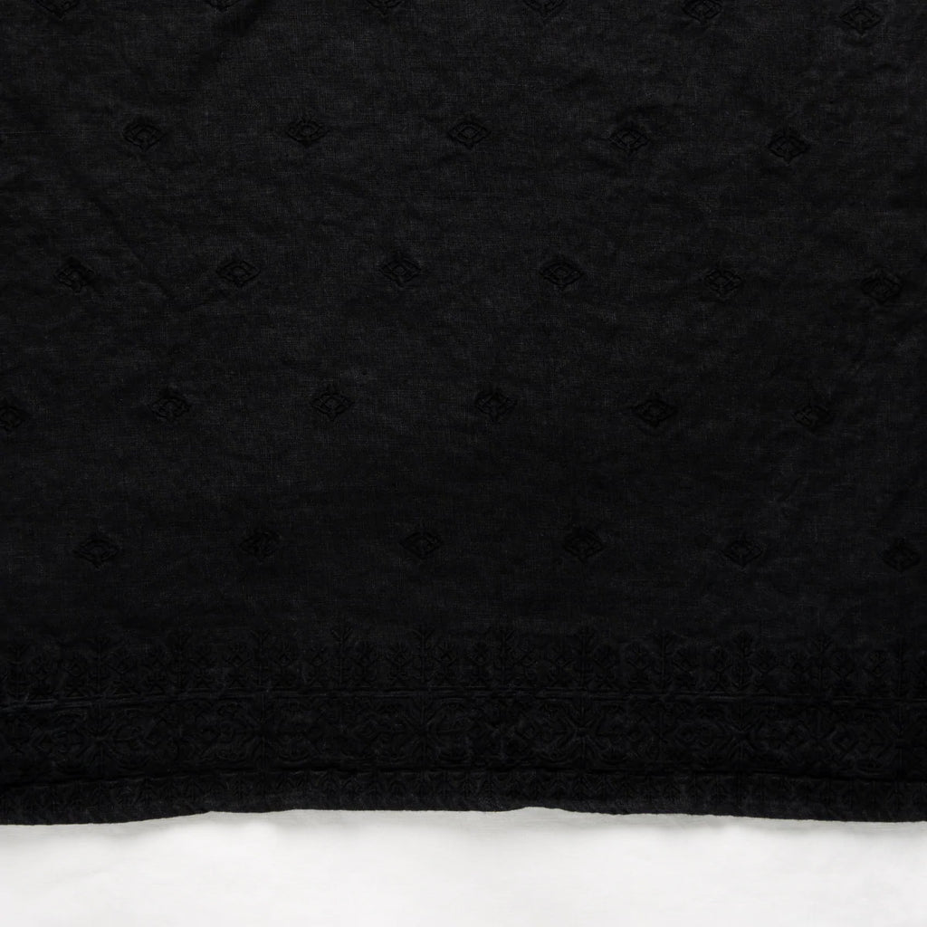• Band embroidery on one end with allover embroidery throughout, knife edge.