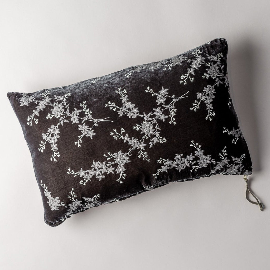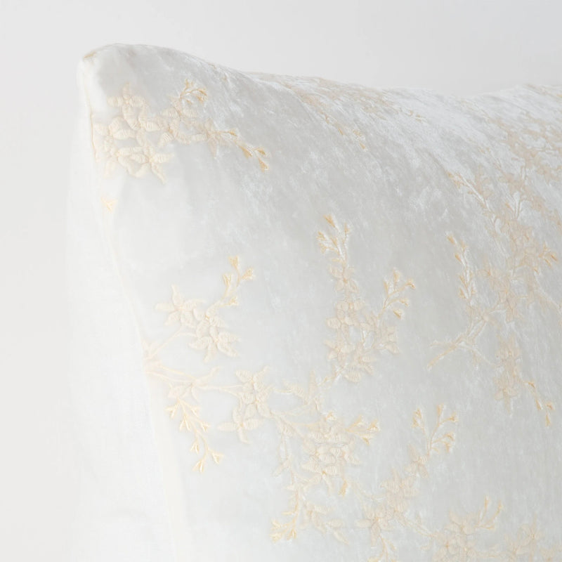 Designed in softly textured silk velvet, the Bella Notte Lynette Accent Pillow flaunts graceful floral embroidery with pale gold accents inspired by a vintage chinoiserie. Blending old world glamour with modern form, this dec pillow is backed in easy, elegant mid-weight linen and closed with a gold zipper. Small batch dyed to order in our entire palette, layer Lynette into your space for a luscious pop.