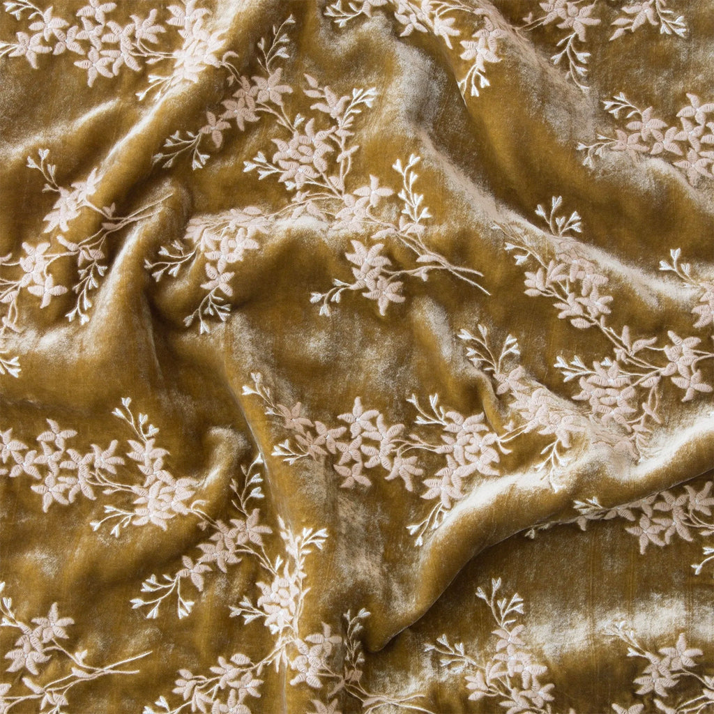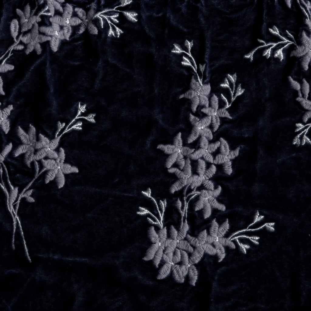 • Embroidered silk velvet with charmeuse edge and charmeuse back, no fill.