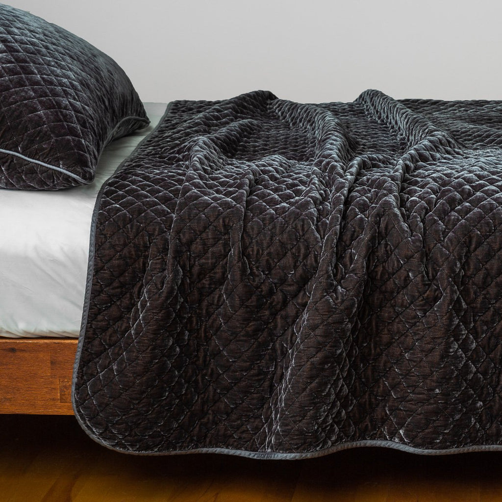 The Bella Notte Silk Velvet Quilted collection dazzles with luxurious style. Finished with satin piping, each garment dyed piece in this collection indulges with rich, sumptuous texture. This Silk Velvet Quilted coverlet adds an extra touch of comfort a bed with a relaxed, plush design.