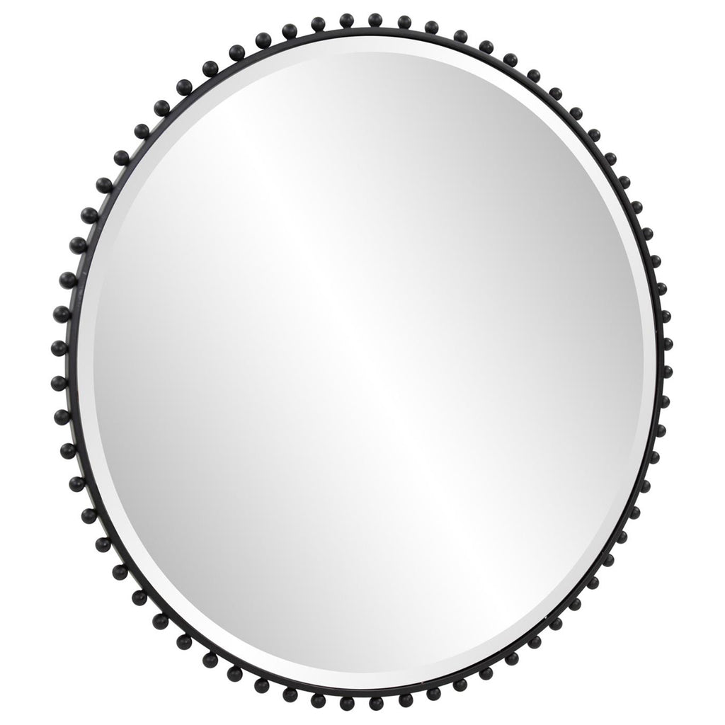 The craftsmanship of the Bellfore beaded frame is extraordinary. Hand forged out of metal, each bead is cut polished and welded onto the frame. The matte black finish is then applied to the mirror to give it a modern twist with a bit of whimsy. It is all in the detailing for this mirror.