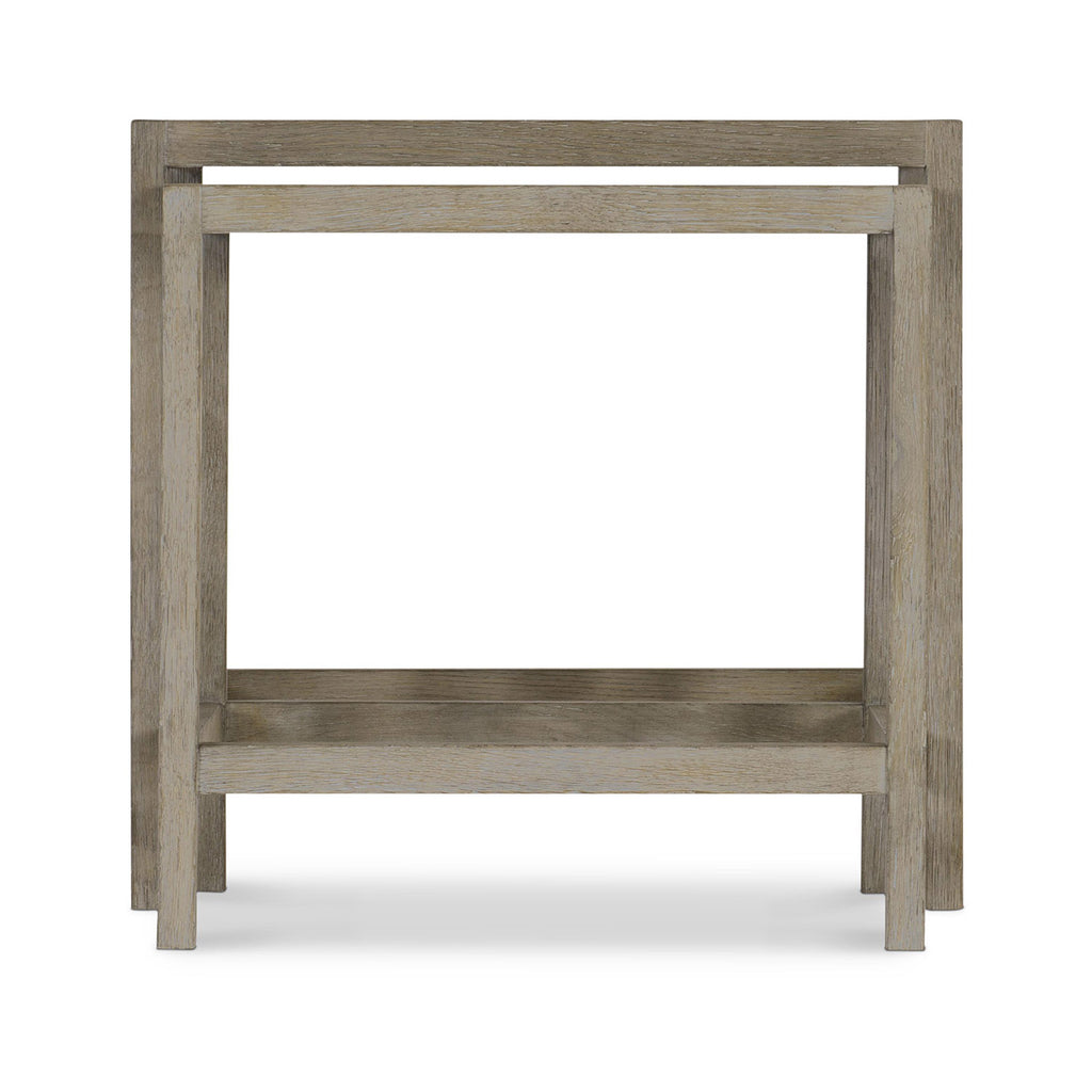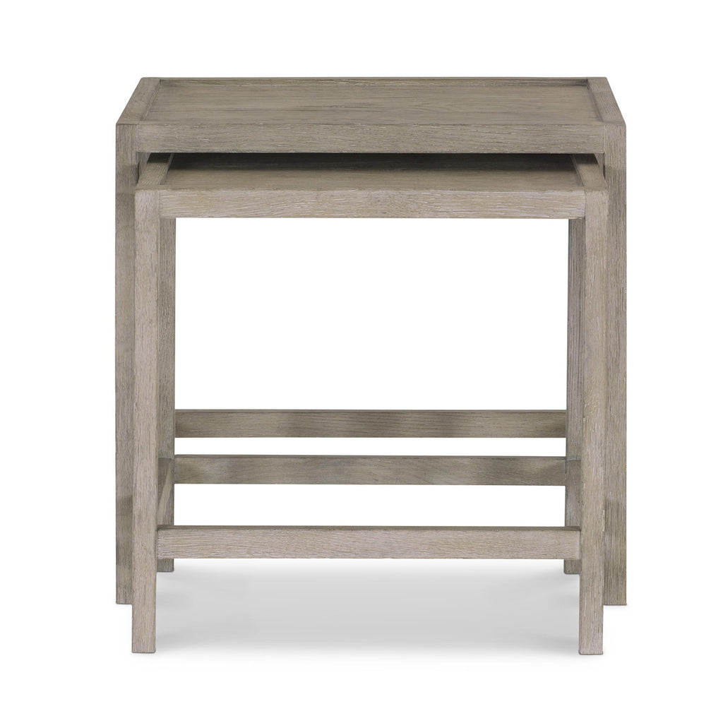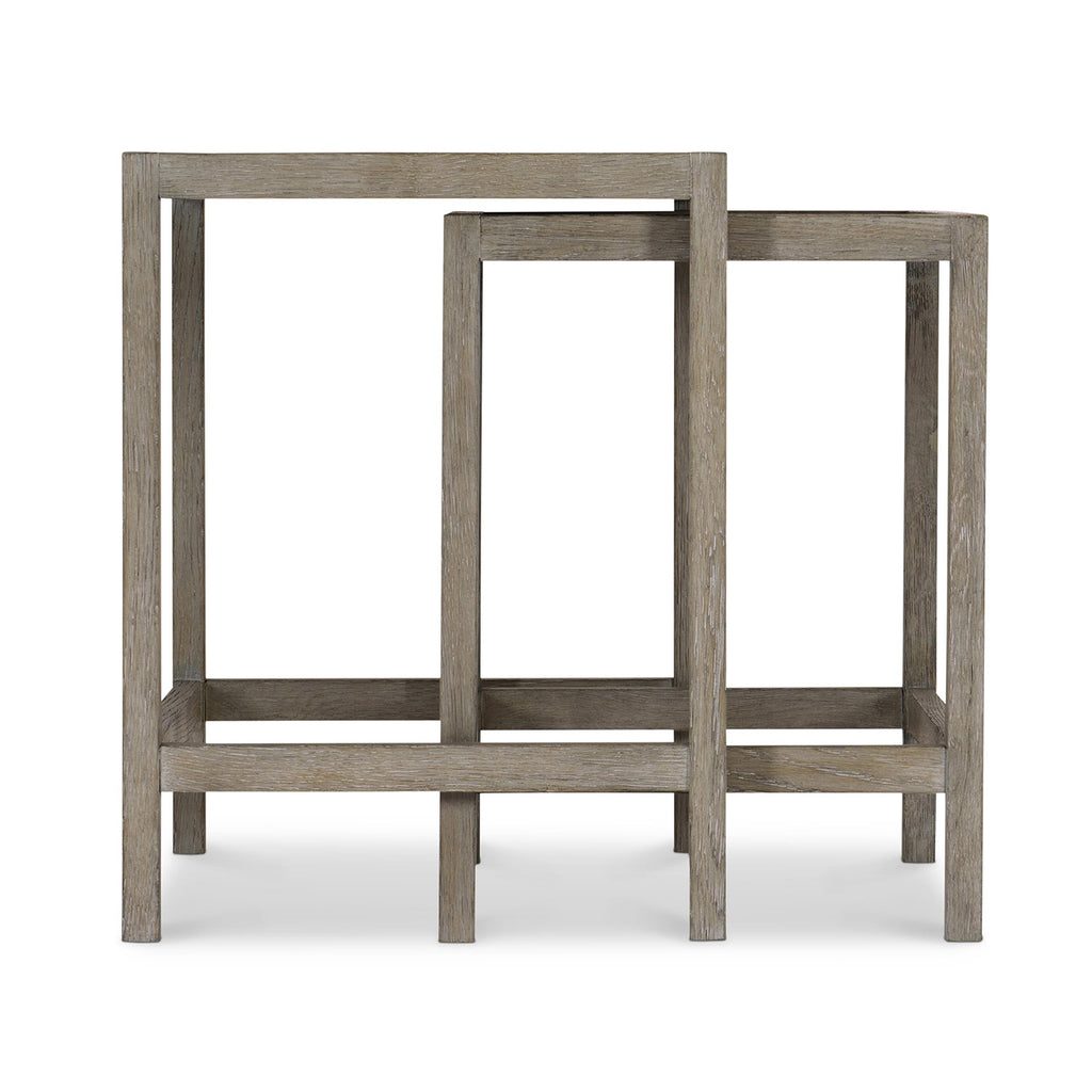 Connectivity through form and function is the compelling key to the Bernhardt Albion nesting tables. Clean lines are crafted with wire-brushed and cerused white oak that add texture and rustic elegance to the frames and gallery-style tops. The tables can be used together for an extended tabletop, or individually when an extra surface is needed. And when space is at a premium, the smaller table quickly tucks out of sight under the taller one.
