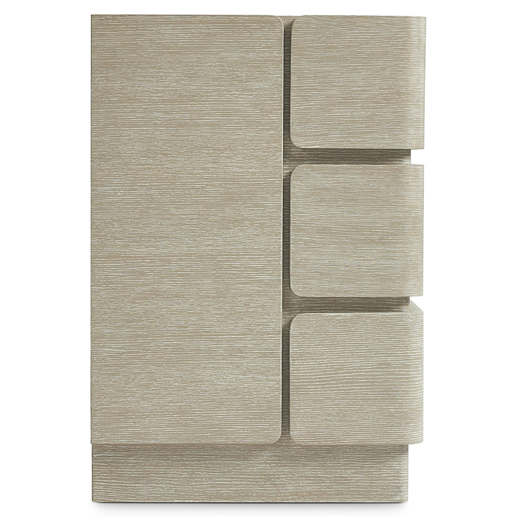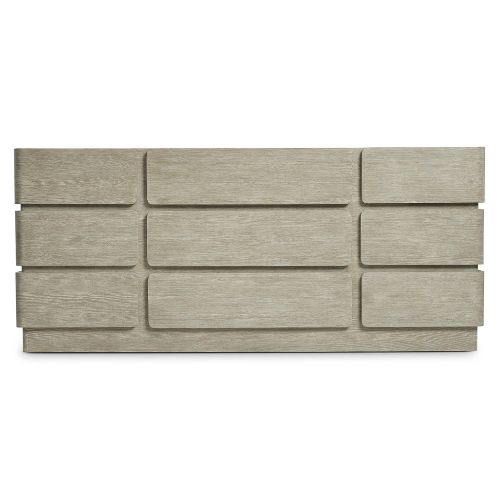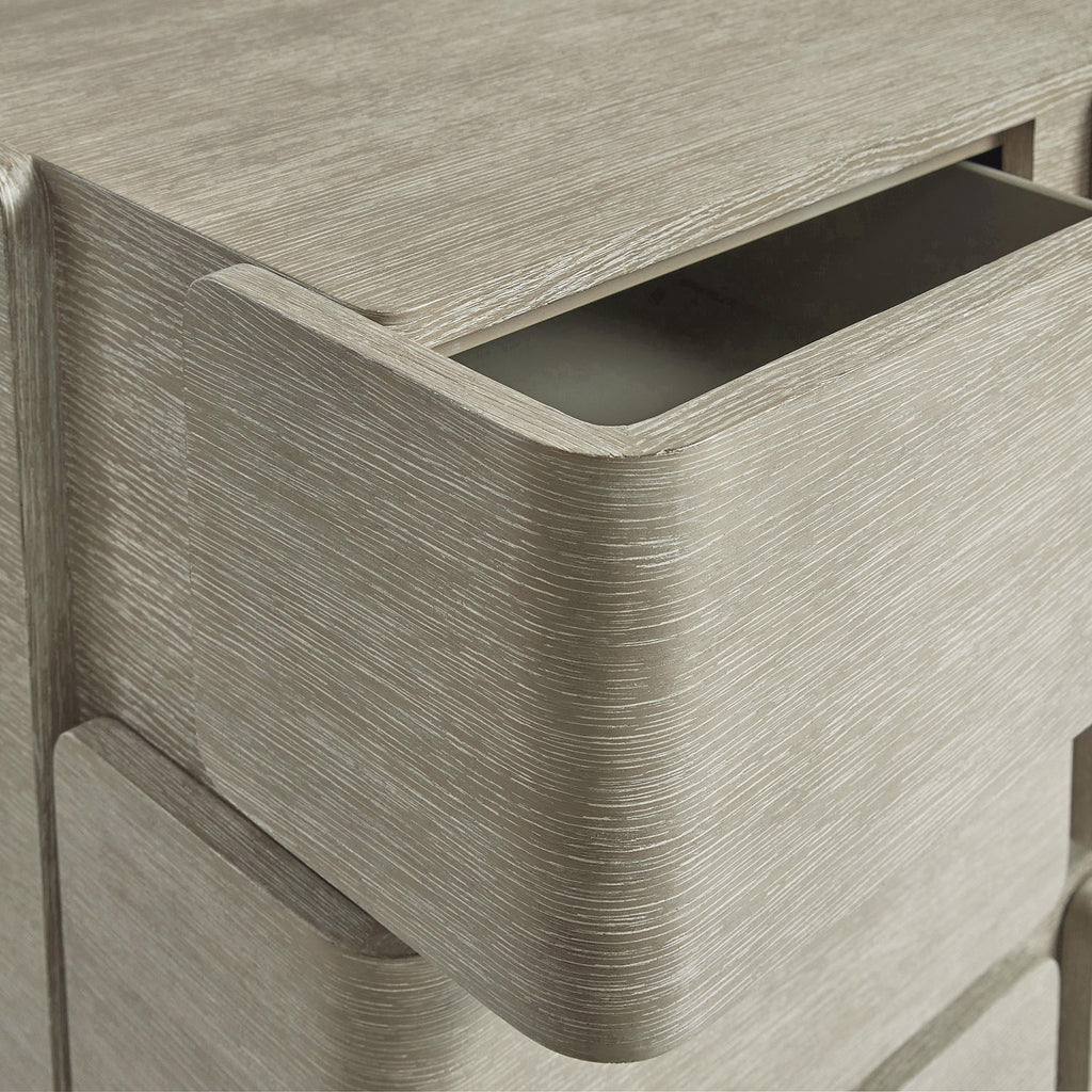 The Bernhardt Arcadia dresser offers an understated design that is both modern and unexpected. The six outside drawers wrap around the sides of the dresser, offering a unique detail. Three larger center drawers have flat fronts. The wire-brushed dresser is finished in Clay for a beautiful textural style.