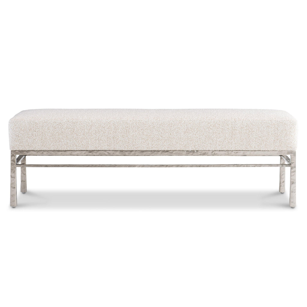 The Bernhardt Aventura bench is a chic blend of contrasts. The textured cast aluminum frame complements the soft upholstered seat. Plush corners balance the tapered legs. The combination is a beautifully casual design.