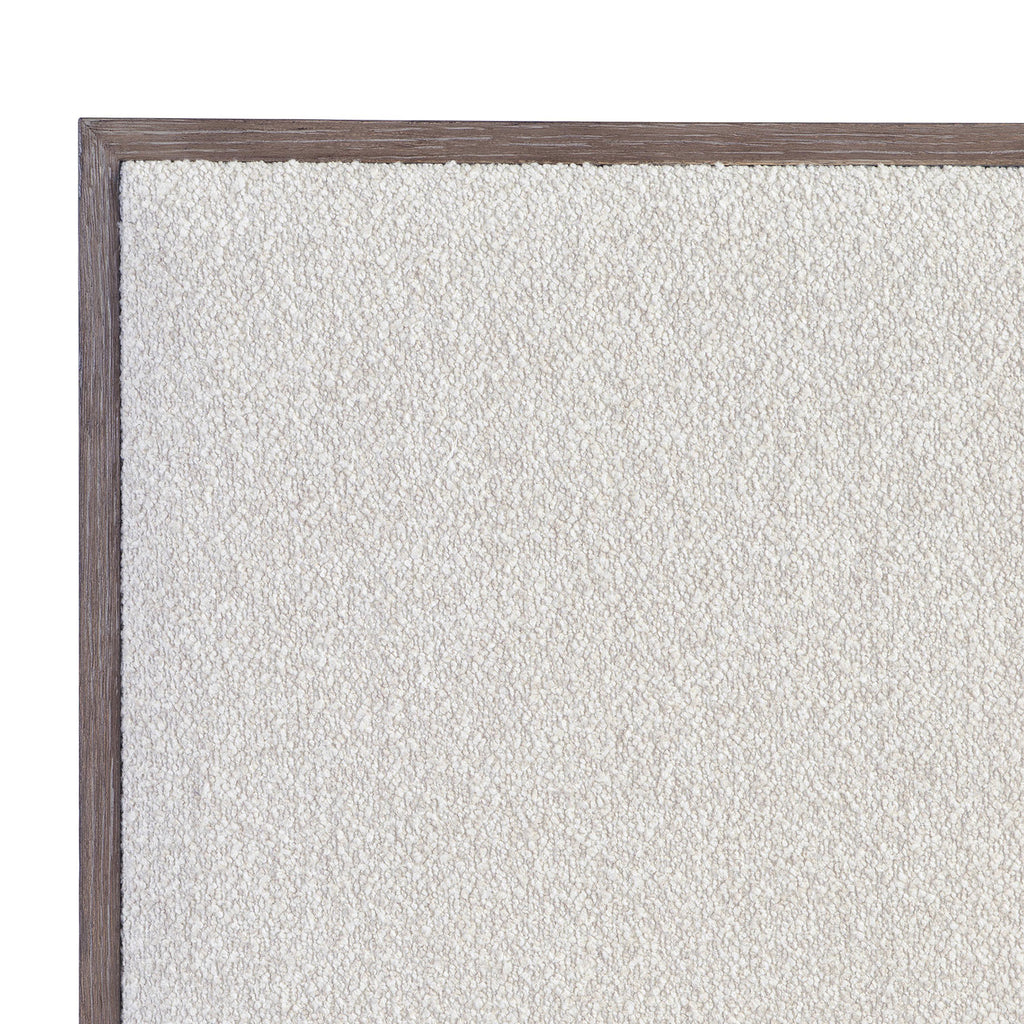 An understated tactile style is showcased in the Bernhardt Casa Paros panel bed. A deep wood frame in the Playa finish surrounds inset upholstered panels on the headboard and footboard. The low footboard is deep enough to be used as a bench.