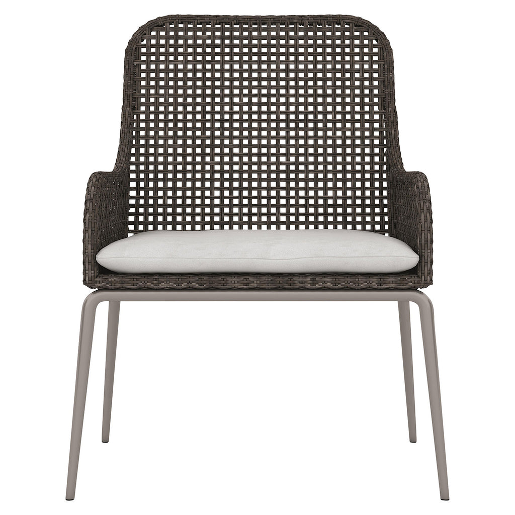 Bernhardt Exteriors is characterized by exceptional luxury, ultimate comfort and sophisticated design. With its natural aesthetic and durability, the Antilles wicker arm chair is an ideal outdoor seat. Stylish, sturdy and lightweight, it features open weave all-weather wicker in a Tobacco Leaf finish. Powder-coated stainless steel legs add a sleek, modern touch.