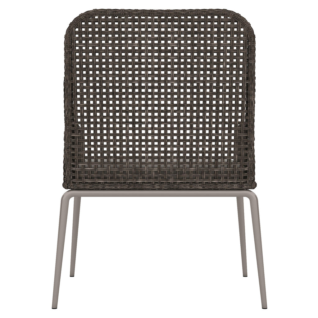 • Silver Mist powder-coated finish on frame. Upper Aluminum frame wrapped in open weave Pewter Gray wicker.