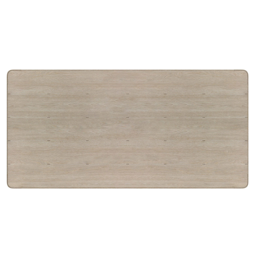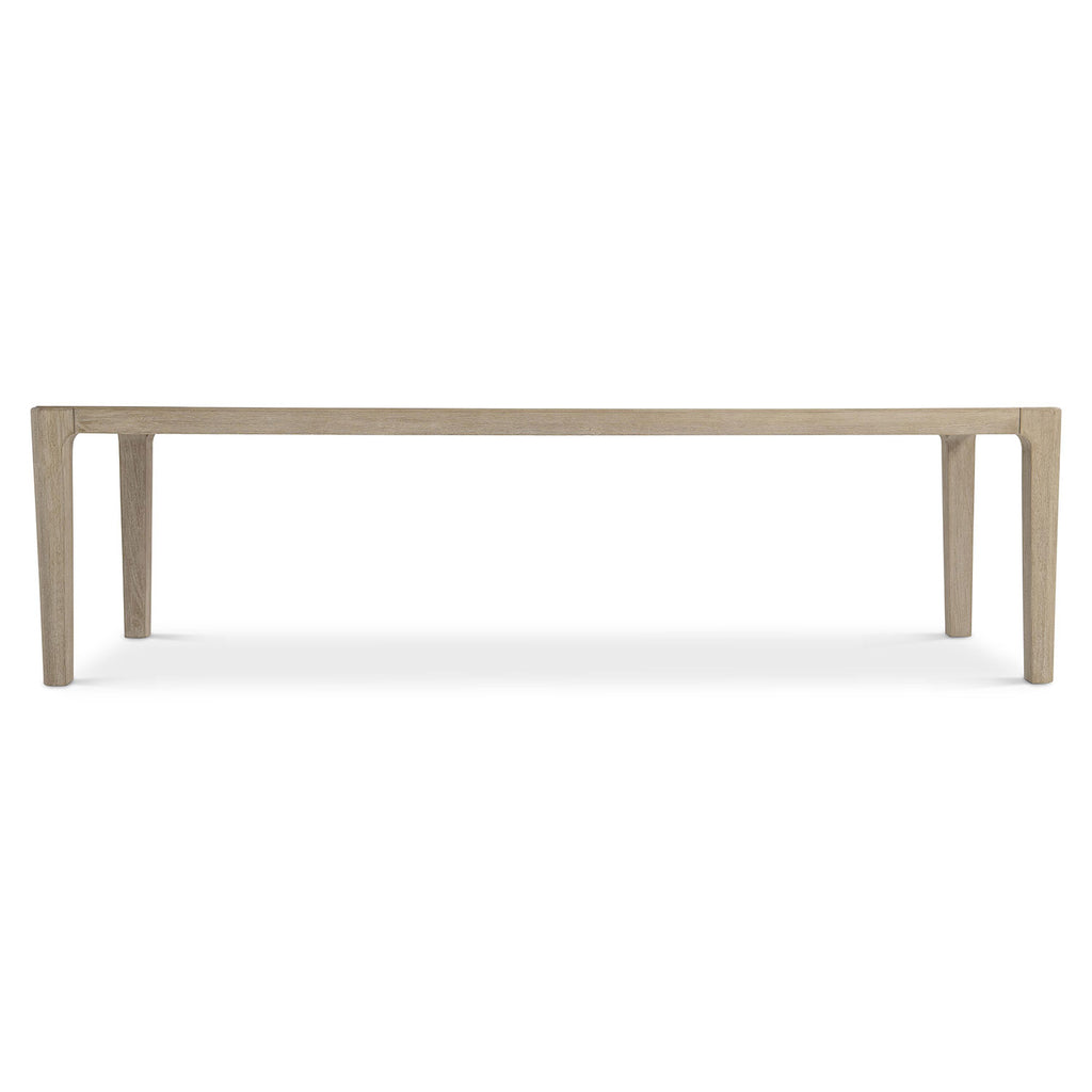 The Bernhardt Exteriors Edenton outdoor dining table takes on a sleek and simple form for a modern look. Made of teak in a Sea Oat finish, the corners of the slatted top are softly rounded, and the legs have a slight taper to them that offers a polished style.