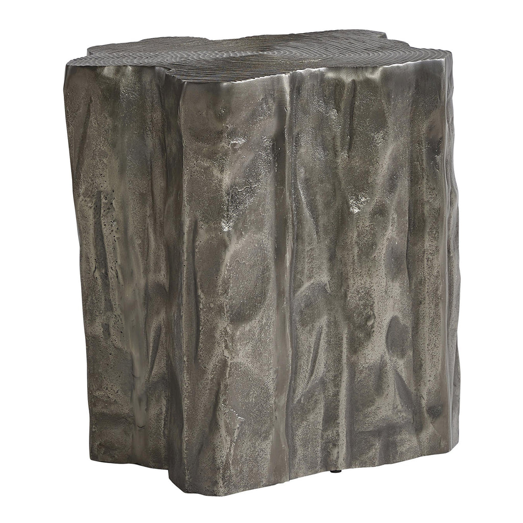 Looking as if it was hewn directly from the forest, the Bernhardt Exteriors Elba outdoor accent table lives up to the faux bois description. The wood look is actually crafted from hollow cast aluminum that gives it a distinctive design in a Graphite finish.
